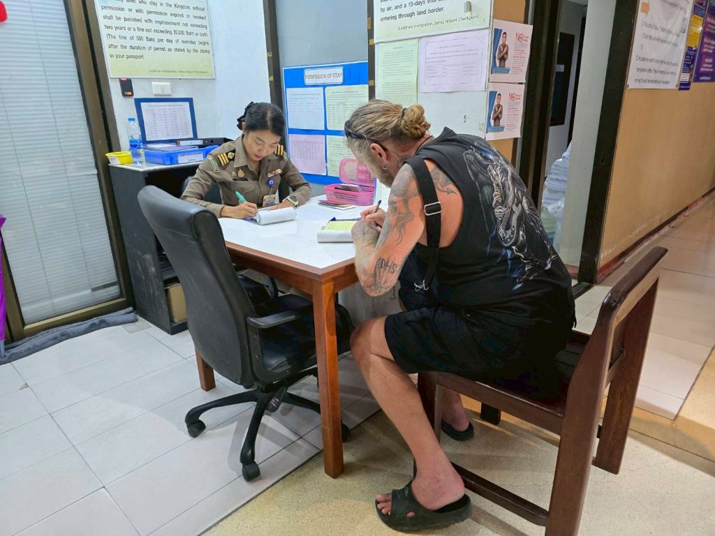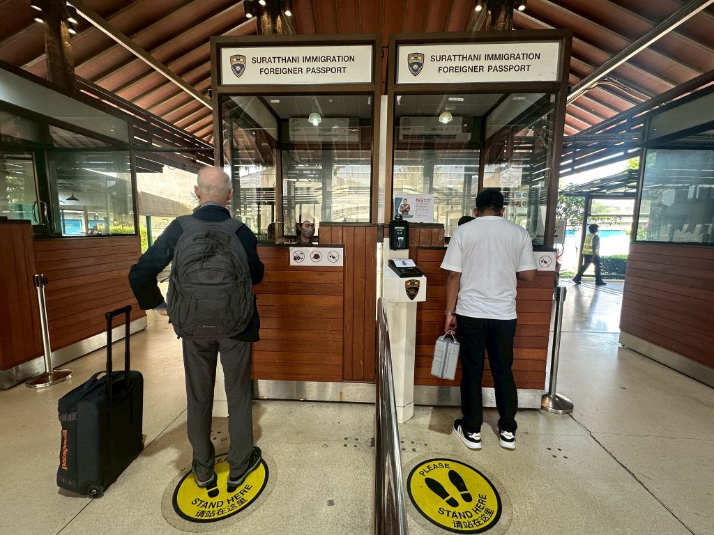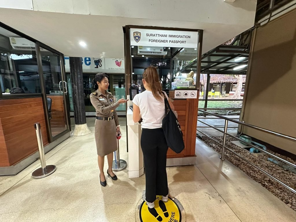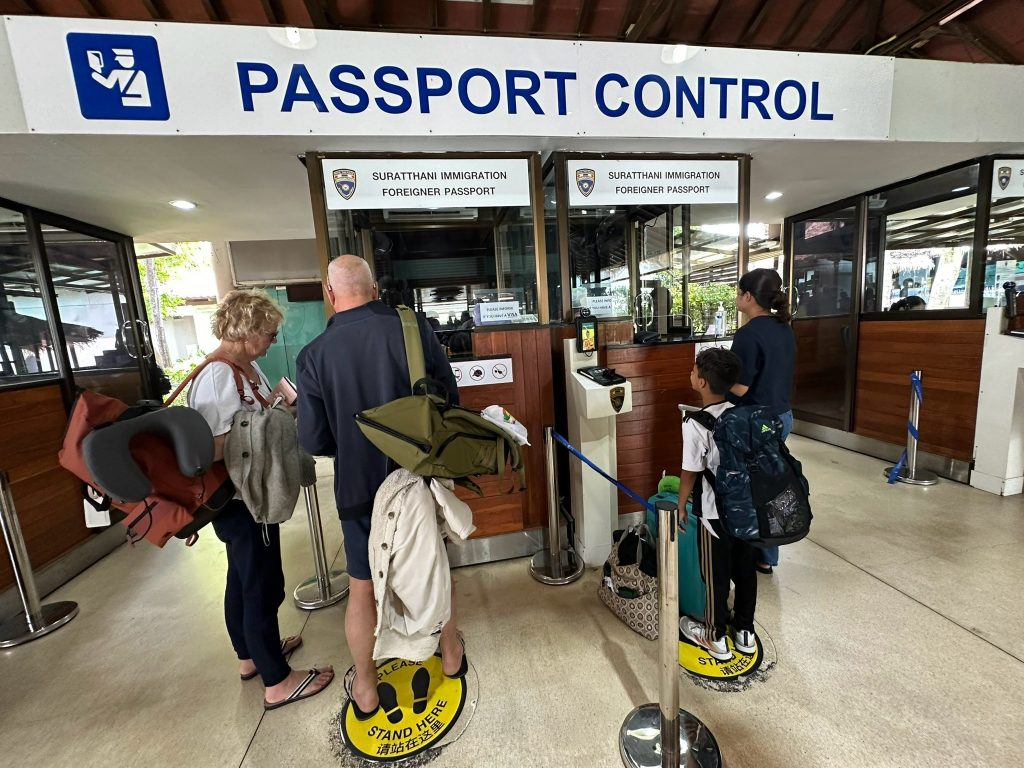 วันที่ 25 มี.ค.68 ร.ต.อ.ธฤติพัฒน์ สมมะลวน รอง สว.ตม.จว.สุราษฎร์ธานี ,ร.ต.อ.หญิง ภาวดี หวานทอง ,ร.ต.อ.หญิง จันทร์จิรา วิถี พร้อมด้วยเจ้าหน้าที่ ตม.จว.สุราษฎร์ธานี (ทอ.สมุย) ปฏิบัติหน้าที่ตรวจบุคคลและพาหนะทางอากาศ, Overstay, Visa on arrival พร้อมดูแล ช่วยเหลือ อำนวยความสะดวกและความเรียบร้อยในแถวระหว่างรอเข้าใช้บริการให้กับผู้โดยสารที่เดินทางเข้า-ออก ทางอากาศในเขตพื้นที่รับผิดชอบประจำสนามบินสมุย อ.เกาะสมุย จว.สุราษฎร์ธานี