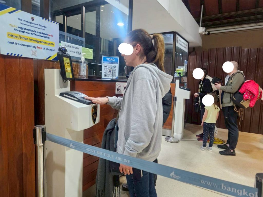 วันที่ 19/2/2569 เวลา 21.30 น. ร.ต.อ.หญิง ภาวดี หวานทอง รอง สว.ตม.จว.สุราษฎร์ธานี พร้อมด้วยเจ้าหน้าที่ ตม.จว. สุราษฎร์ ธานี (ทอ.สมุย) ปฏิบัติหน้าที่ตรวจบุคคลและพาหนะทางอากาศให้กับผู้โดยสารที่เดินทางเข้า เที่ยวบิน PG962 ในเขตพื้นที่รับผิดชอบประจำสนามบินสมุย
