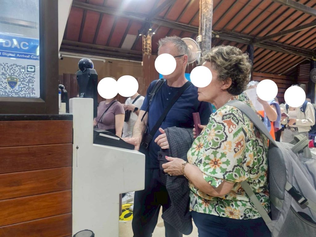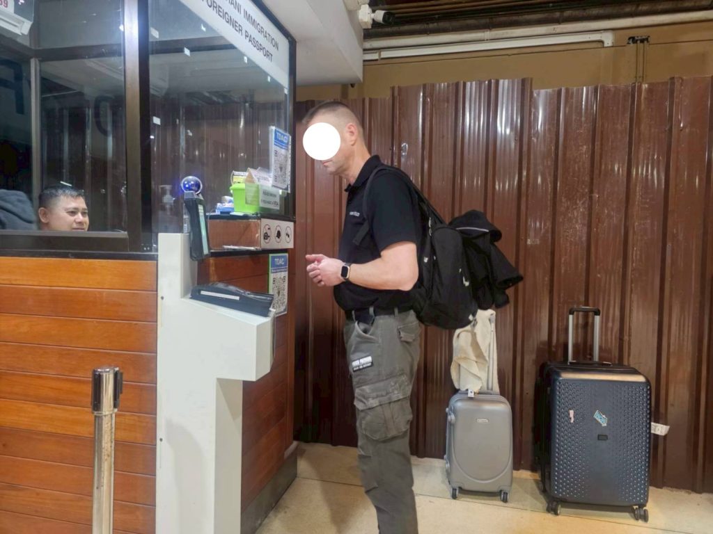 วันที่ 23/2/2569 เวลา 20.47 น. ร.ต.อ.หญิง ภาวดี หวานทอง รอง สว.ตม.จว.สุราษฎร์ธานี พร้อมด้วยเจ้าหน้าที่ ตม.จว. สุราษฎร์ธานี (ทอ.สมุย) ปฏิบัติหน้าที่ตรวจบุคคลและพาหนะทางอากาศให้กับผู้โดยสารที่เดินทางเข้า เที่ยวบิน PG962 ในเขตพื้นที่รับผิดชอบประจำสนามบินสมุย