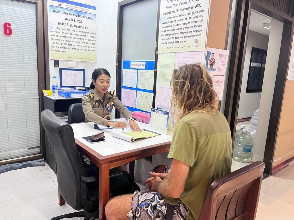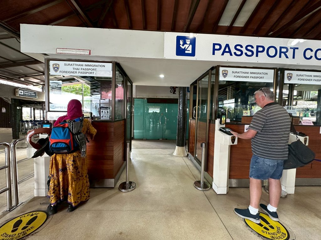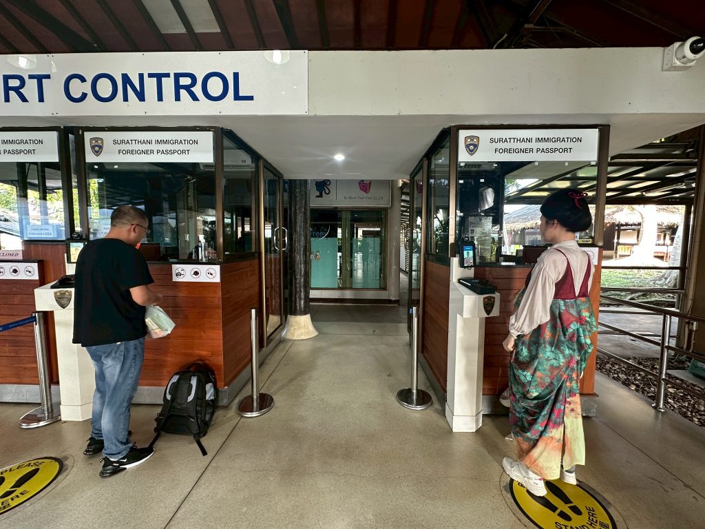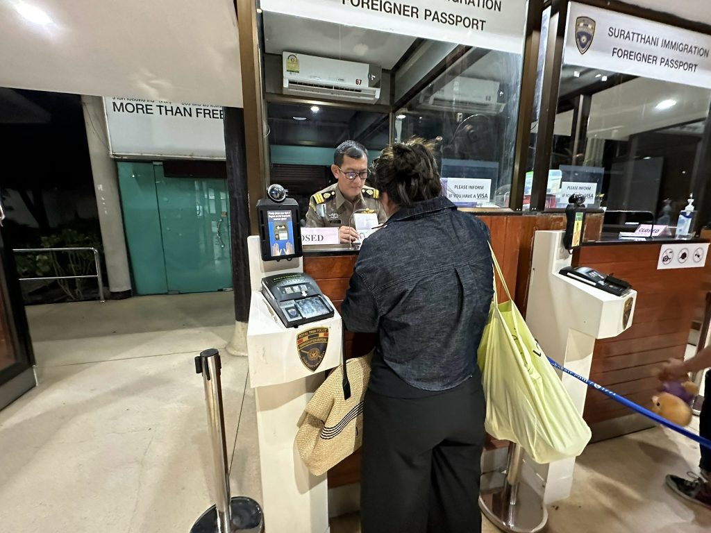 วันที่ 26 มี.ค.68 ร.ต.อ.ธฤติพัฒน์ สมมะลวน รอง สว.ตม.จว.สุราษฎร์ธานี ,ร.ต.อ.หญิง ภาวดี หวานทอง ,ร.ต.อ.หญิง จันทร์จิรา วิถี พร้อมด้วยเจ้าหน้าที่ ตม.จว.สุราษฎร์ธานี (ทอ.สมุย) ปฏิบัติหน้าที่ตรวจบุคคลและพาหนะทางอากาศ, Overstay, Visa on arrival พร้อมดูแล ช่วยเหลือ อำนวยความสะดวกและความเรียบร้อยในแถวระหว่างรอเข้าใช้บริการให้กับผู้โดยสารที่เดินทางเข้า-ออก ทางอากาศในเขตพื้นที่รับผิดชอบประจำสนามบินสมุย อ.เกาะสมุย จว.สุราษฎร์ธานี