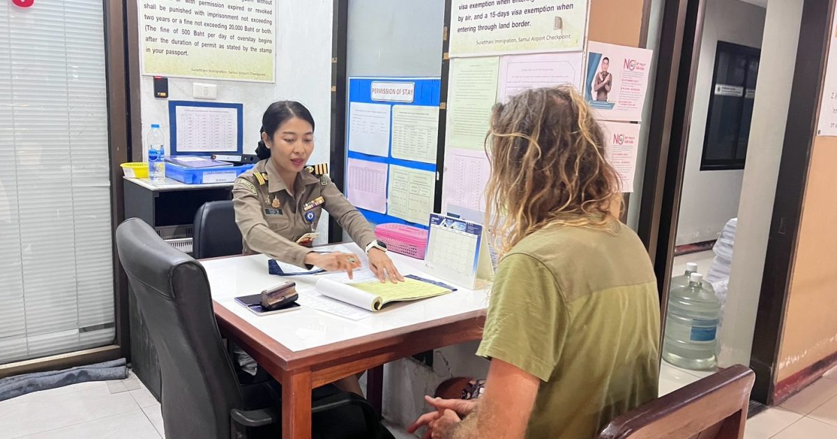 วันที่ 26 มี.ค.68 ร.ต.อ.ธฤติพัฒน์ สมมะลวน รอง สว.ตม.จว.สุราษฎร์ธานี ,ร.ต.อ.หญิง ภาวดี หวานทอง ,ร.ต.อ.หญิง จันทร์จิรา วิถี พร้อมด้วยเจ้าหน้าที่ ตม.จว.สุราษฎร์ธานี (ทอ.สมุย) ปฏิบัติหน้าที่ตรวจบุคคลและพาหนะทางอากาศ, Overstay, Visa on arrival พร้อมดูแล ช่วยเหลือ อำนวยความสะดวกและความเรียบร้อยในแถวระหว่างรอเข้าใช้บริการให้กับผู้โดยสารที่เดินทางเข้า-ออก ทางอากาศในเขตพื้นที่รับผิดชอบประจำสนามบินสมุย อ.เกาะสมุย จว.สุราษฎร์ธานี