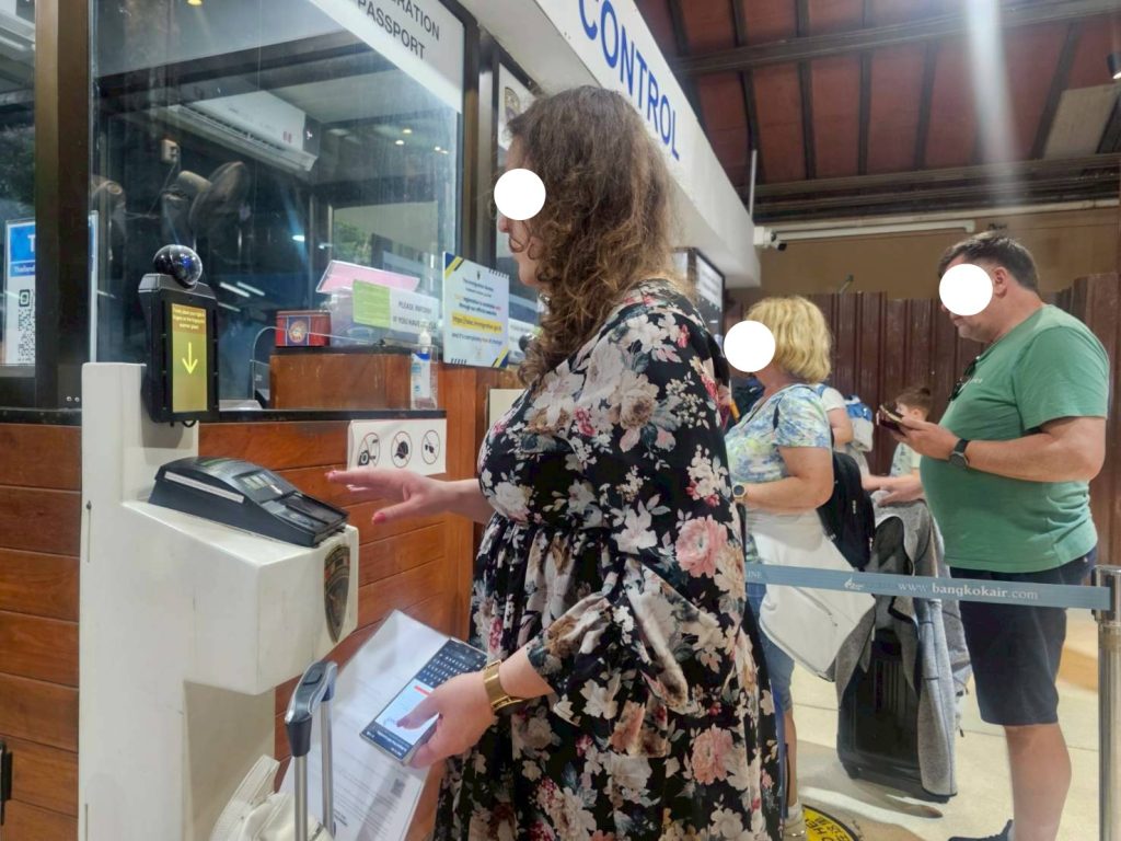 วันที่ 6/3/2569 เวลา 20.45 น. ร.ต.อ.หญิง ภาวดี หวานทอง รอง สว.ตม.จว.สุราษฎร์ธานี พร้อมด้วยเจ้าหน้าที่ ตม.จว. สุราษฎร์ธานี (ทอ.สมุย) ปฏิบัติหน้าที่ตรวจบุคคลและพาหนะทางอากาศให้กับผู้โดยสารที่เดินทางเข้า เที่ยวบิน PG962 ในเขตพื้นที่รับผิดชอบประจำสนามบินสมุย