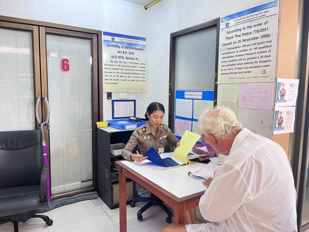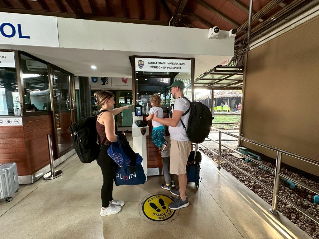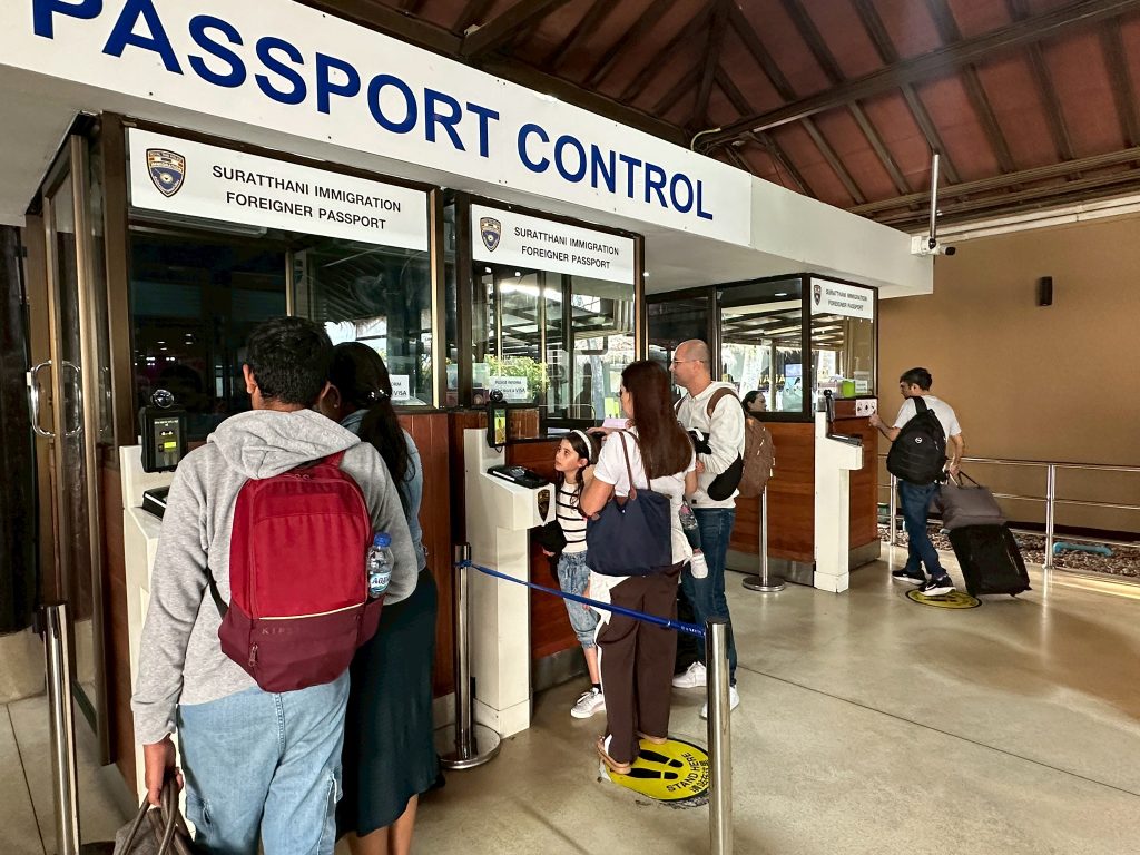 วันที่ 27 มี.ค.68 ร.ต.อ.ธฤติพัฒน์ สมมะลวน รอง สว.ตม.จว.สุราษฎร์ธานี ,ร.ต.อ.หญิง ภาวดี หวานทอง ,ร.ต.อ.หญิง จันทร์จิรา วิถี พร้อมด้วยเจ้าหน้าที่ ตม.จว.สุราษฎร์ธานี (ทอ.สมุย) ปฏิบัติหน้าที่ตรวจบุคคลและพาหนะทางอากาศ, Overstay, Visa on arrival พร้อมดูแล ช่วยเหลือ อำนวยความสะดวกและความเรียบร้อยในแถวระหว่างรอเข้าใช้บริการให้กับผู้โดยสารที่เดินทางเข้า-ออก ทางอากาศในเขตพื้นที่รับผิดชอบประจำสนามบินสมุย อ.เกาะสมุย จว.สุราษฎร์ธานี