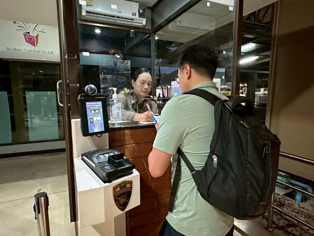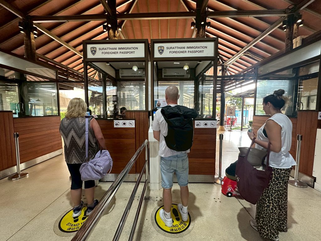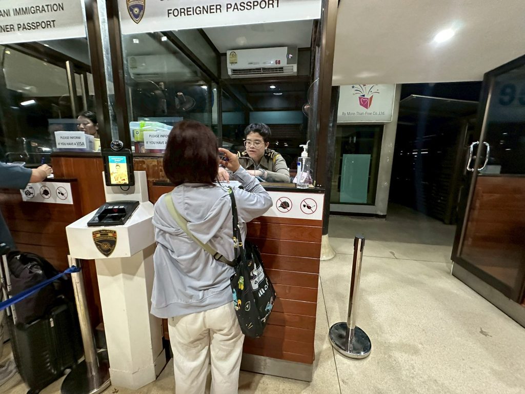 วันที่ 28 มี.ค.68 ร.ต.อ.ธฤติพัฒน์ สมมะลวน รอง สว.ตม.จว.สุราษฎร์ธานี ,ร.ต.อ.หญิง ภาวดี หวานทอง ,ร.ต.อ.หญิง จันทร์จิรา วิถี พร้อมด้วยเจ้าหน้าที่ ตม.จว.สุราษฎร์ธานี (ทอ.สมุย) ปฏิบัติหน้าที่ตรวจบุคคลและพาหนะทางอากาศ, Overstay, Visa on arrival พร้อมดูแล ช่วยเหลือ อำนวยความสะดวกและความเรียบร้อยในแถวระหว่างรอเข้าใช้บริการให้กับผู้โดยสารที่เดินทางเข้า-ออก ทางอากาศในเขตพื้นที่รับผิดชอบประจำสนามบินสมุย อ.เกาะสมุย จว.สุราษฎร์ธานี