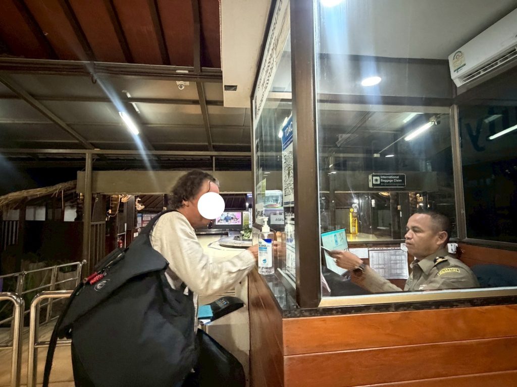 วันที่ 24/3/2569 เวลา 20.00 น. ร.ต.อ.หญิง จันทร์จิรา วิถี รอง สว.ตม.จว.สุราษฎร์ธานี พร้อมด้วยเจ้าหน้าที่ ตม.จว.สุราษฎร์ธานี (ทอ.สมุย) ปฏิบัติหน้าที่ตรวจบุคคลและพาหนะทางอากาศให้กับผู้โดยสารที่เดินทางเข้าเที่ยวบิน PG806 ในเขตพื้นที่รับผิดชอบประจำสนามบินสมุย