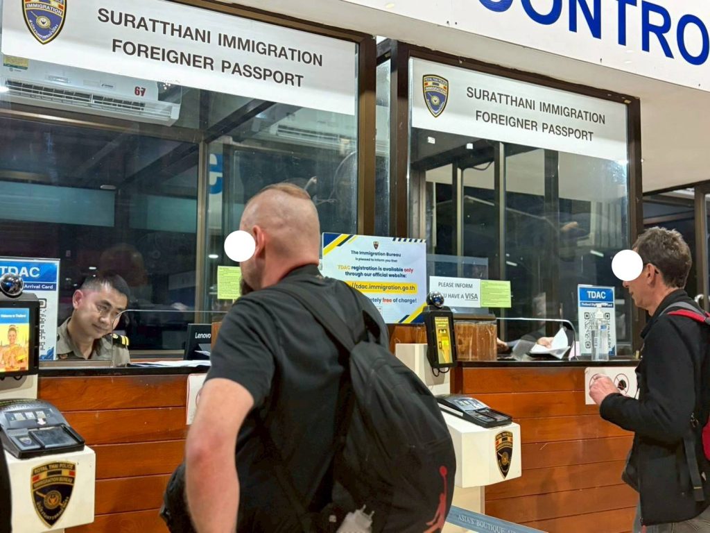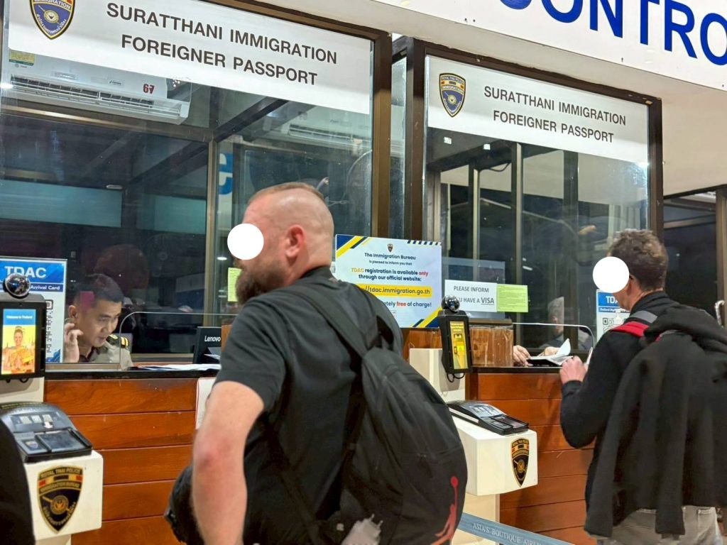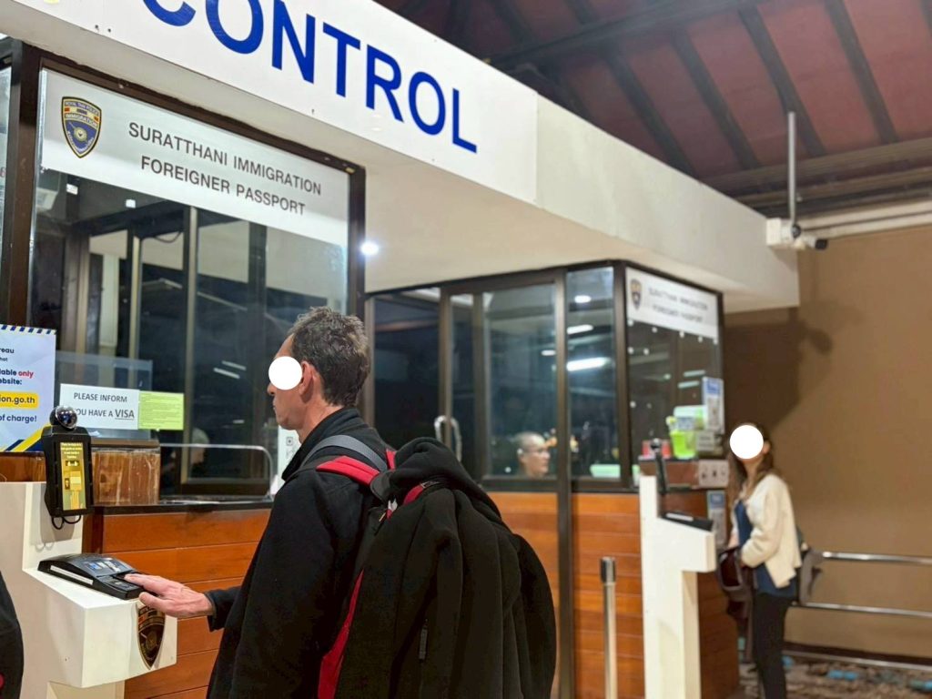 ตม.จว. สุราษฎร์ธานี (ทอ.สมุย) ปฏิบัติหน้าที่ตรวจบุคคลและพาหนะทางอากาศให้กับผู้โดยสารที่เดินทางเข้า เที่ยวบิน PG962 ในเขตพื้นที่รับผิดชอบประจำสนามบินสมุย