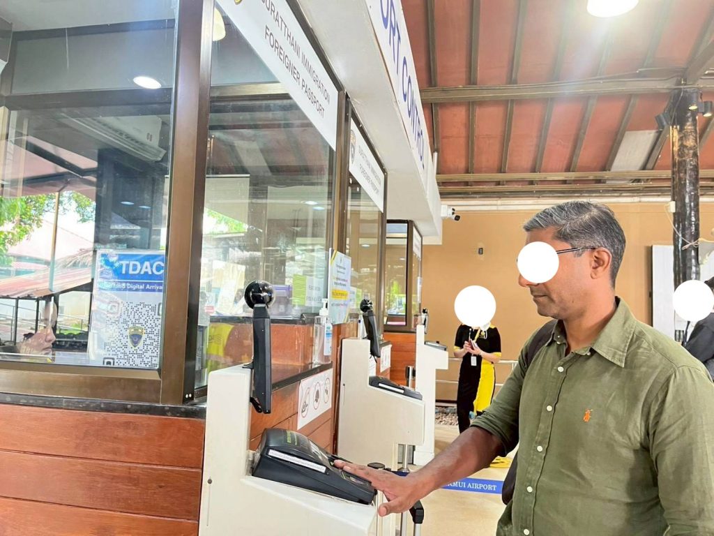วันที่ 10/1/2569 เวลา 18.01 น. ร.ต.อ.หญิง ภาวดี หวานทอง รอง สว.ตม.จว.สุราษฎร์ธานี พร้อมด้วยเจ้าหน้าที่ ตม.จว.สุราษฎร์ ธานี (ทอ.สมุย) ปฏิบัติหน้าที่ตรวจบุคคลและพาหนะทางอากาศให้กับผู้โดยสารที่เดินทางเข้า เที่ยวบิน PG968 ในเขตพื้นที่รับผิดชอบประจำสนามบินสมุย