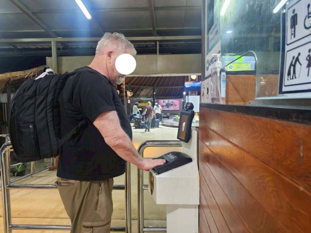 วันที่ 17/10/2568 เวลา 21.08 น. ร.ต.อ.หญิง ภาวดี หวานทอง รอง สว.ตม.จว.สุราษฎร์ธานี พร้อมด้วยเจ้าหน้าที่ ตม.จว. สุราษฎร์ ธานี (ทอ.สมุย) ปฏิบัติหน้าที่ตรวจบุคคลและพาหนะทางอากาศให้กับผู้โดยสารที่เดินทางเข้า เที่ยวบิน PG962 ในเขตพื้นที่รับผิดชอบประจำสนามบินสมุย