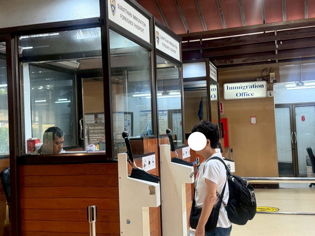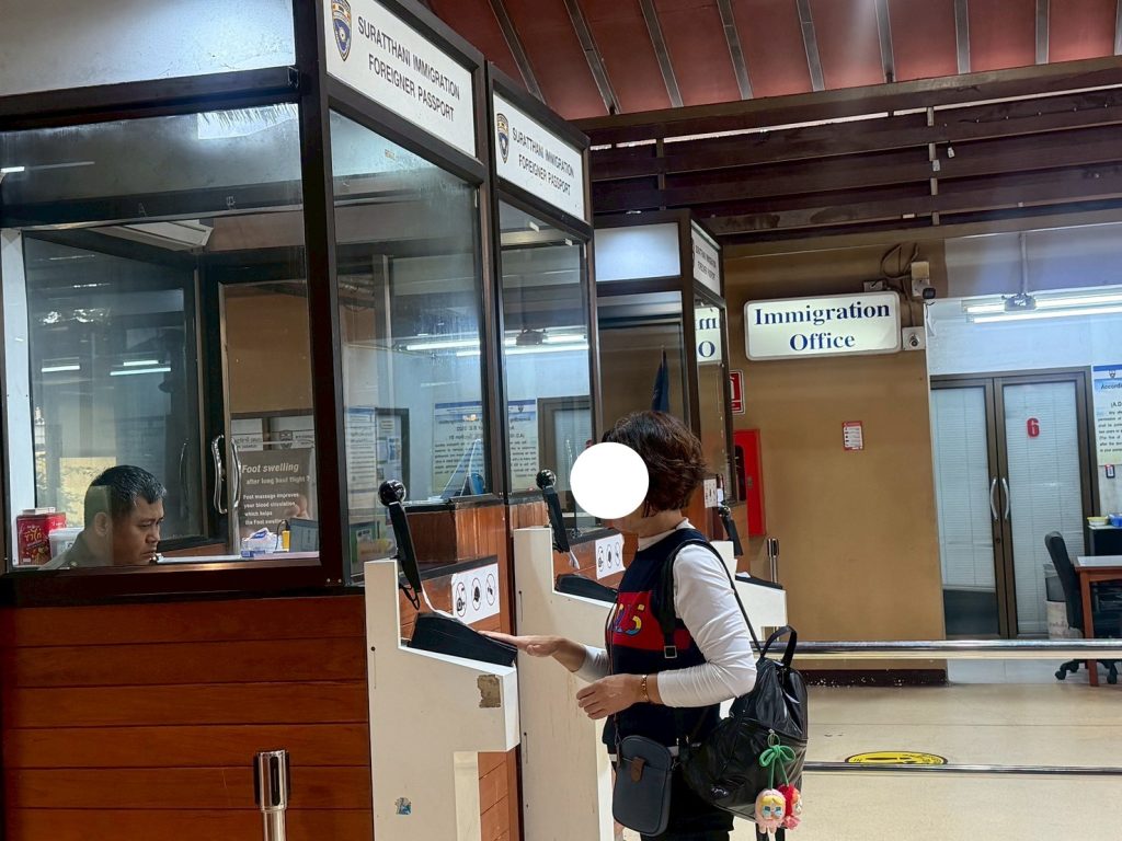 วันที่ 26/10/2568 เวลา 13.00 น. ร.ต.อ.ธฤติพัฒน์ สมมะลวน รอง สว.ตม.จว.สุราษฎร์ธานี พร้อมด้วยเจ้าหน้าที่ ตม.จว.สุราษฎร์ธานี (ทอ.สมุย) ปฏิบัติหน้าที่ตรวจบุคคลและพาหนะทางอากาศให้กับผู้โดยสารที่เดินทางออกเที่ยวบิน PG963 ในเขตพื้นที่รับผิดชอบประจำสนามบินสมุย