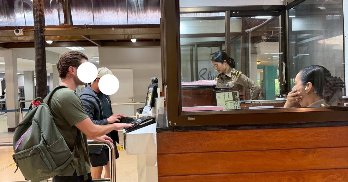 วันที่ 5/12/2568 เวลา 13.10 น. ร.ต.อ.ธฤติพัฒน์ สมมะลวน รอง สว.ตม.จว.สุราษฎร์ธานี พร้อมด้วยเจ้าหน้าที่ ตม.จว.สุราษฎร์ธานี (ทอ.สมุย) ปฏิบัติหน้าที่ตรวจบุคคลและพาหนะทางอากาศให้กับผู้โดยสารที่เดินทางออกเที่ยวบิน PG963 ในเขตพื้นที่รับผิดชอบประจำสนามบินสมุย