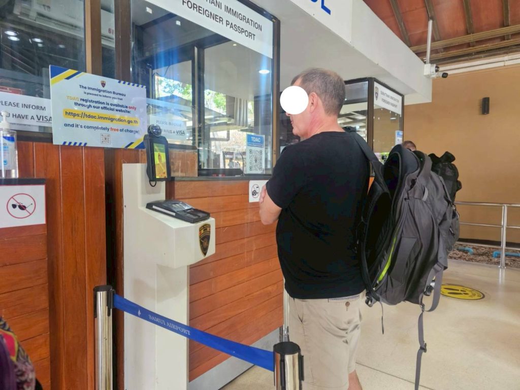 วันที่ 1/11/2568 เวลา 17.49 น. ร.ต.อ.หญิง ภาวดี หวานทอง รอง สว.ตม.จว.สุราษฎร์ธานี พร้อมด้วยเจ้าหน้าที่ ตม.จว. สุราษฎร์ ธานี (ทอ.สมุย) ปฏิบัติหน้าที่ตรวจบุคคลและพาหนะทางอากาศให้กับผู้โดยสารที่เดินทางเข้า เที่ยวบิน PG968 ในเขตพื้นที่รับผิดชอบประจำสนามบินสมุย