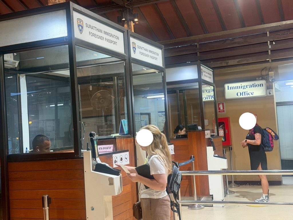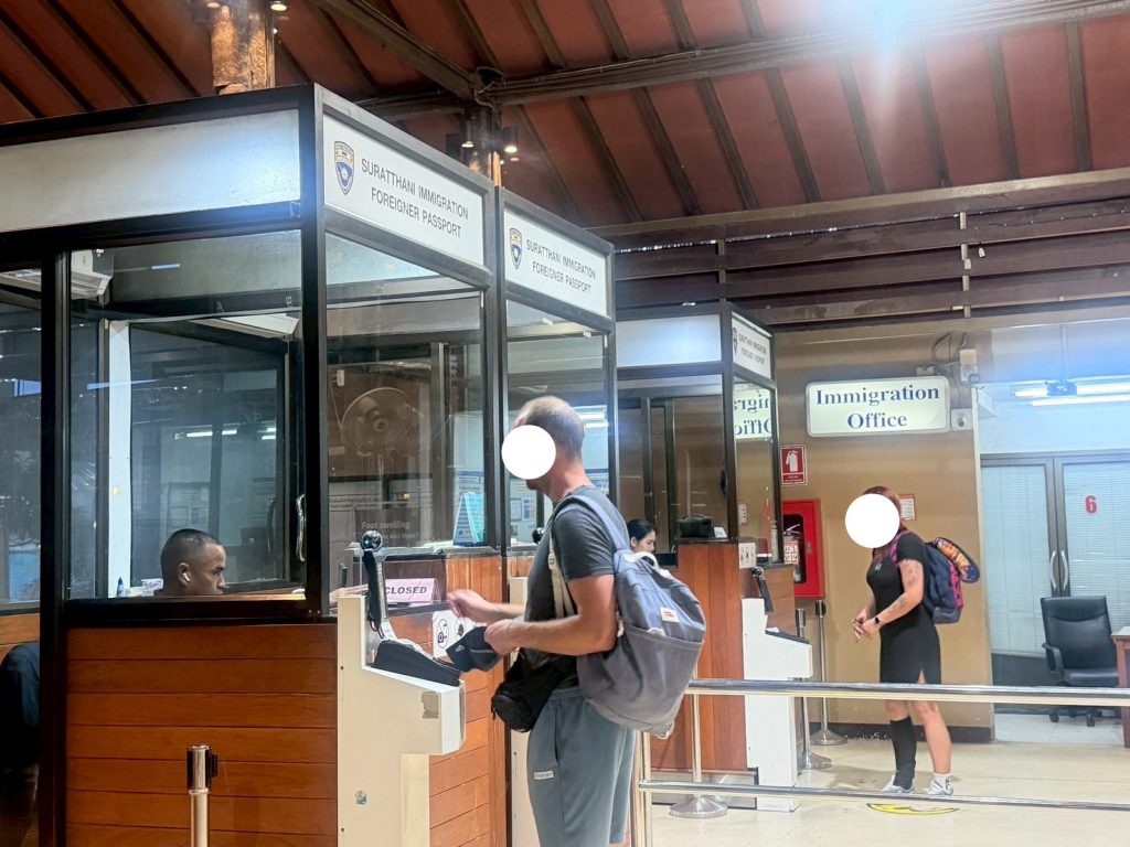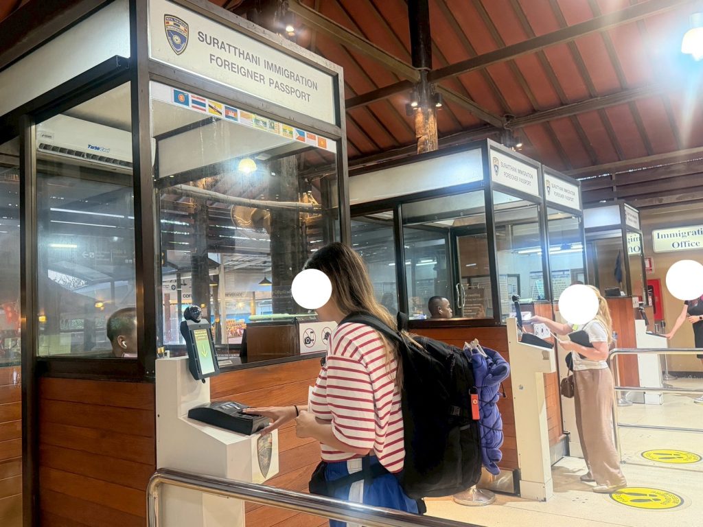 วันที่ 5/11/2568 เวลา 16.00 น. ร.ต.อ.ธฤติพัฒน์ สมมะลวน รอง สว.ตม.จว.สุราษฎร์ธานี พร้อมด้วยเจ้าหน้าที่ ตม.จว.สุราษฎร์ธานี (ทอ.สมุย) ปฏิบัติหน้าที่ตรวจบุคคลและพาหนะทางอากาศให้กับผู้โดยสารที่เดินทางออกเที่ยวบิน PG961 ในเขตพื้นที่รับผิดชอบประจำสนามบินสมุย