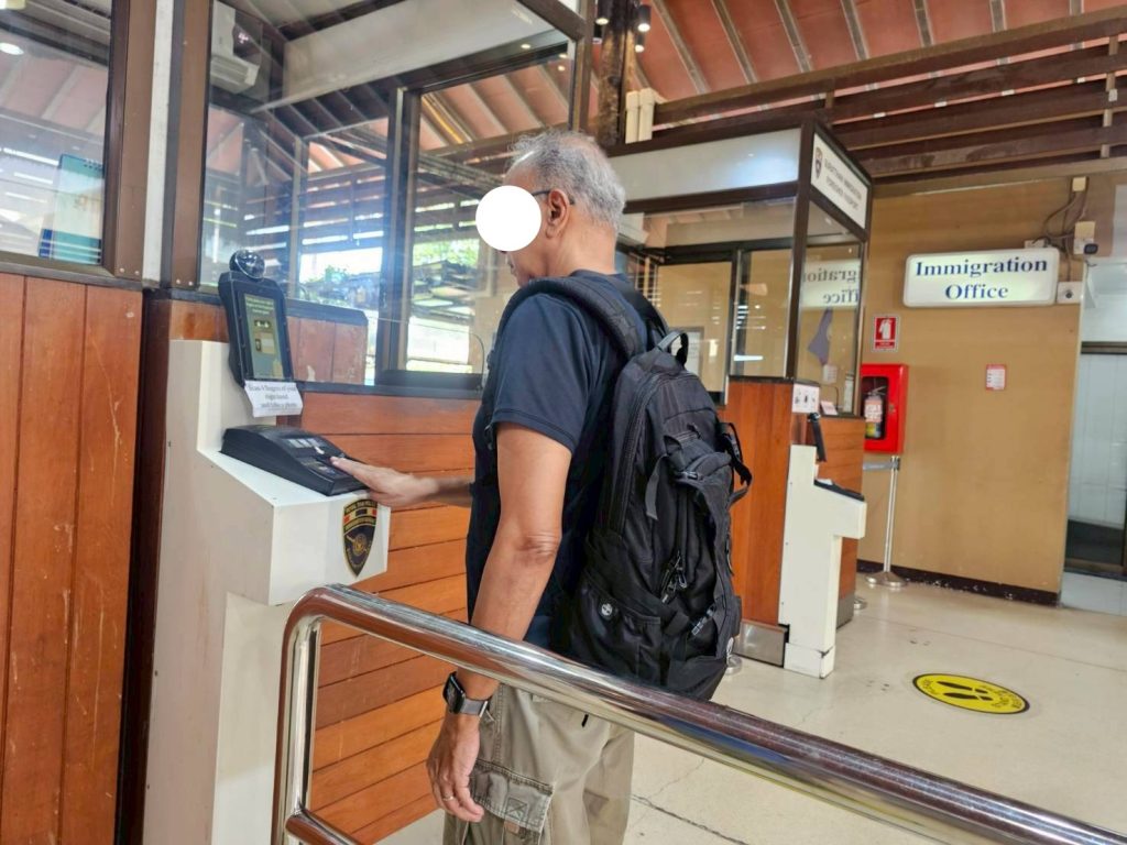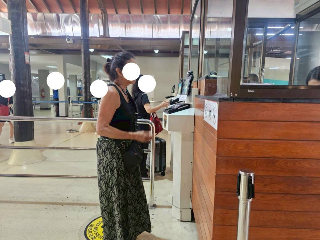 วันที่ 15/11/2568 เวลา 15.16 น. ร.ต.อ.หญิง ภาวดี หวานทอง รอง สว.ตม.จว.สุราษฎร์ธานี พร้อมด้วยเจ้าหน้าที่ ตม.จว. สุราษฎร์ธานี (ทอ.สมุย) ปฏิบัติหน้าที่ตรวจบุคคลและพาหนะทางอากาศให้กับผู้โดยสารที่เดินทางออก เที่ยวบิน PG961 ในเขตพื้นที่รับผิดชอบประจำสนามบินสมุย
