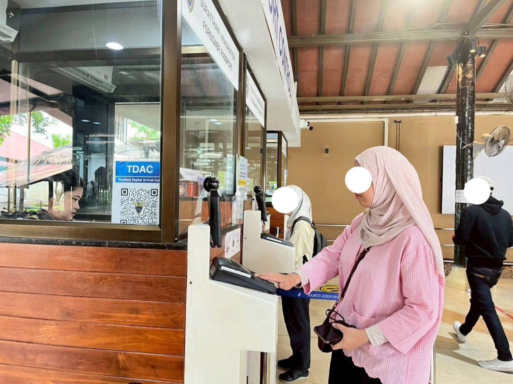 วันที่ 20/1/2569 เวลา 17.51 น. ร.ต.อ.หญิง ภาวดี หวานทอง รอง สว.ตม.จว.สุราษฎร์ธานี พร้อมด้วยเจ้าหน้าที่ ตม.จว. สุราษฎร์ธานี (ทอ.สมุย) ปฏิบัติหน้าที่ตรวจบุคคลและพาหนะทางอากาศให้กับผู้โดยสารที่เดินทางเข้า เที่ยวบิน PG968 ในเขตพื้นที่รับผิดชอบประจำสนามบินสมุย
