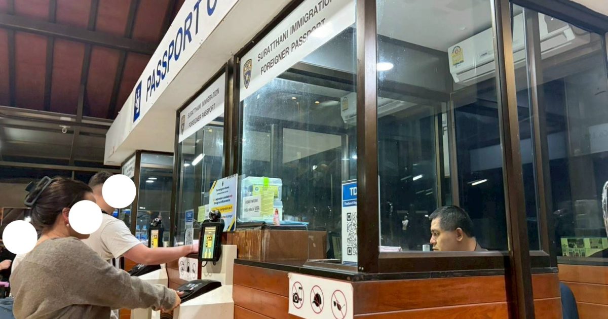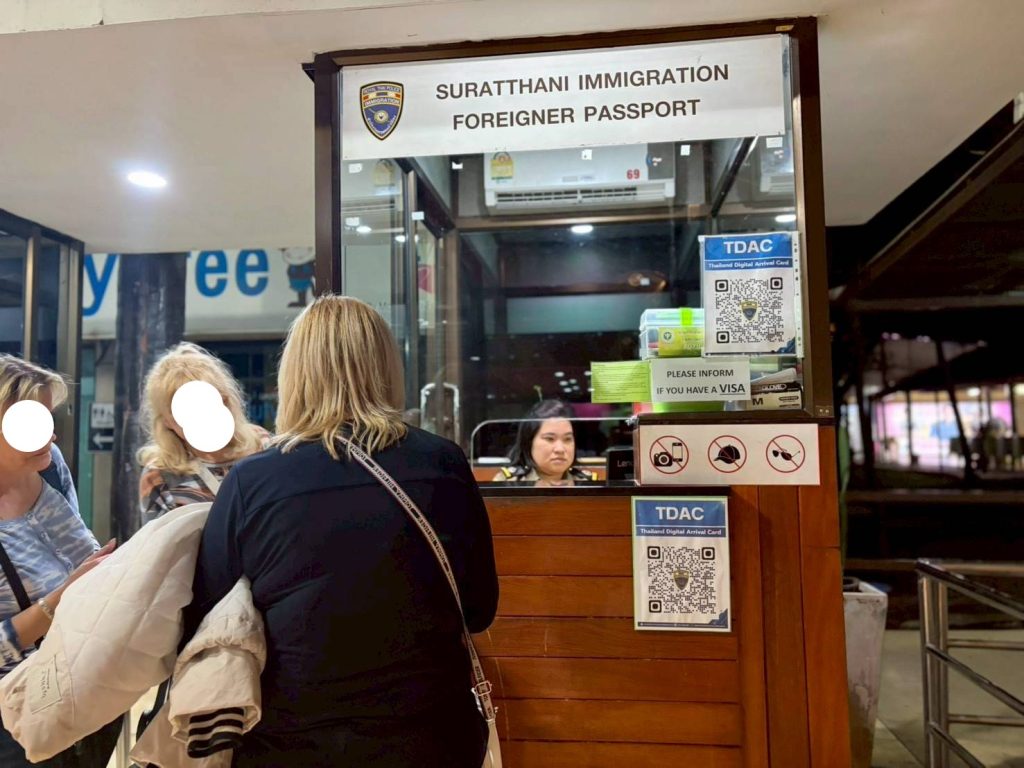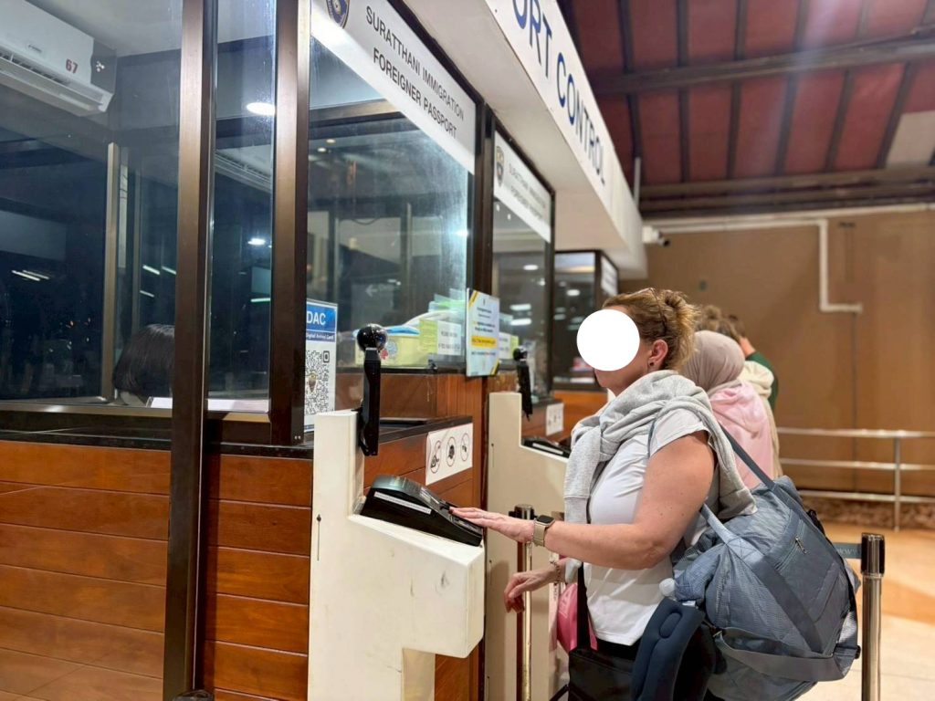วันที่ 3/2/2569 เวลา 20.29 น. ร.ต.อ.หญิง ภาวดี หวานทอง รอง สว.ตม.จว.สุราษฎร์ธานี พร้อมด้วยเจ้าหน้าที่ ตม.จว.สุราษฎร์ธานี (ทอ.สมุย) ปฏิบัติหน้าที่ตรวจบุคคลและพาหนะทางอากาศให้กับผู้โดยสารที่เดินทางเข้า เที่ยวบิน TR648 ในเขตพื้นที่รับผิดชอบประจำสนามบินสมุย