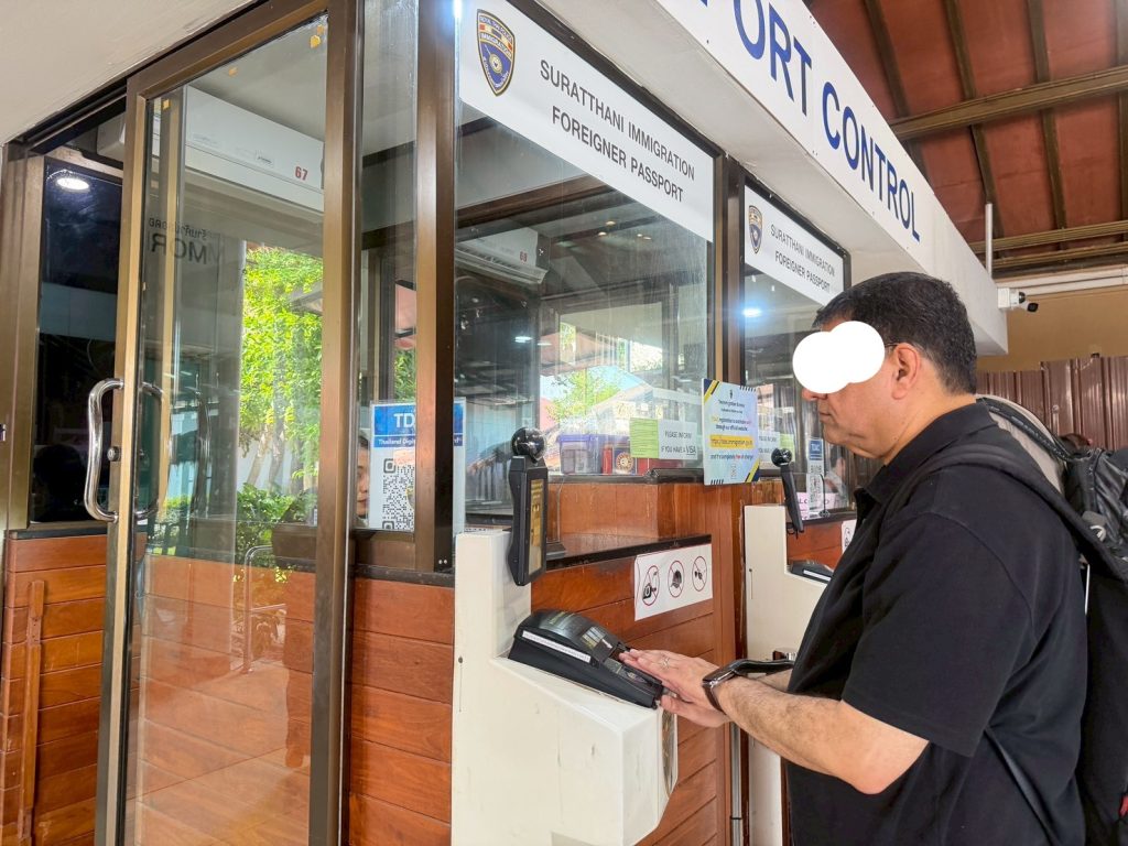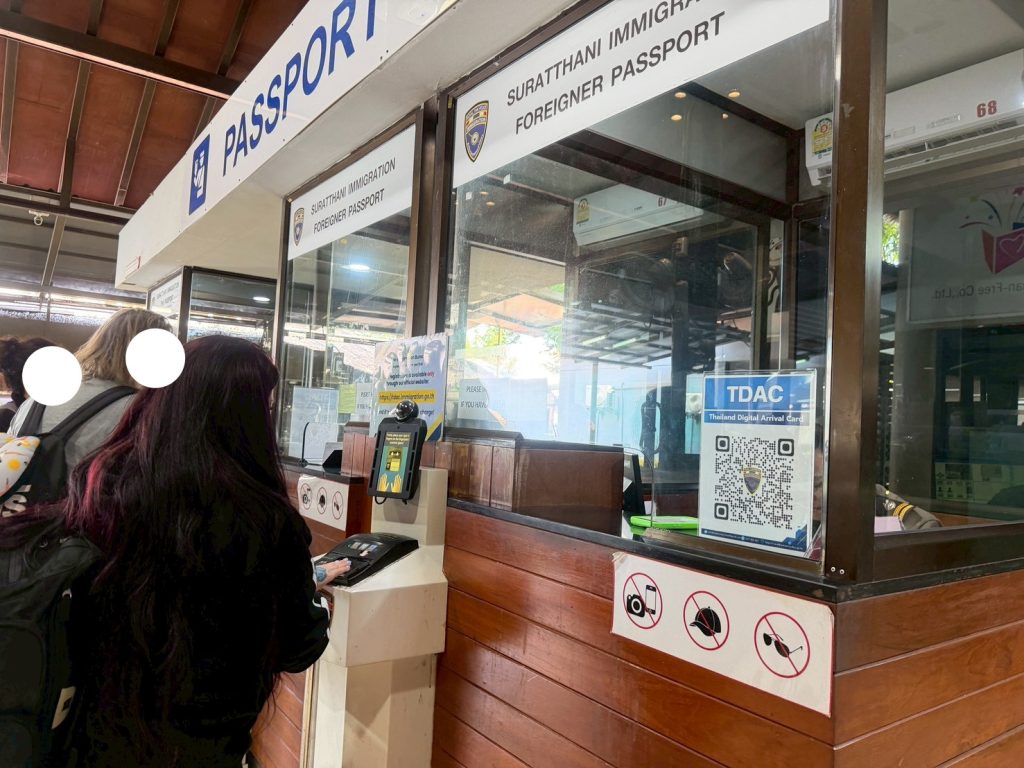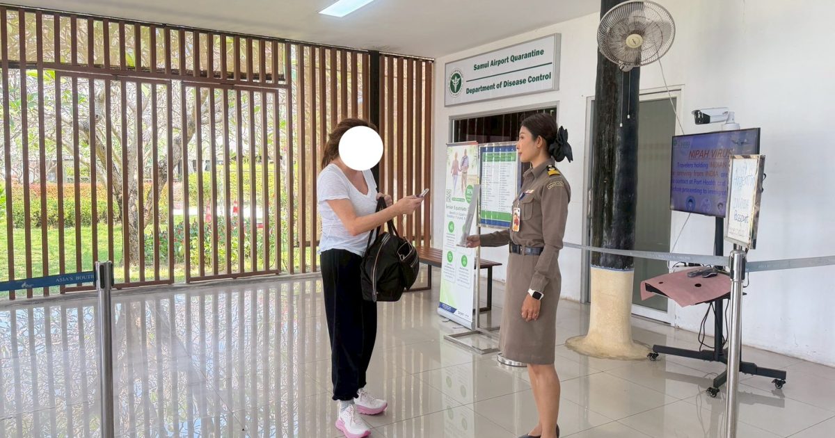 วันที่ 10/2/2569 เวลา 17.30 น. ร.ต.อ.หญิง จันทร์จิรา วิถี รอง สว.ตม.จว.สุราษฎร์ธานี พร้อมด้วยเจ้าหน้าที่ ตม.จว.สุราษฎร์ธานี (ทอ.สมุย) ปฏิบัติหน้าที่ตรวจบุคคลและพาหนะทางอากาศให้กับผู้โดยสารที่เดินทางเข้าเที่ยวบิน TR694 ในเขตพื้นที่รับผิดชอบประจำสนามบินสมุย
