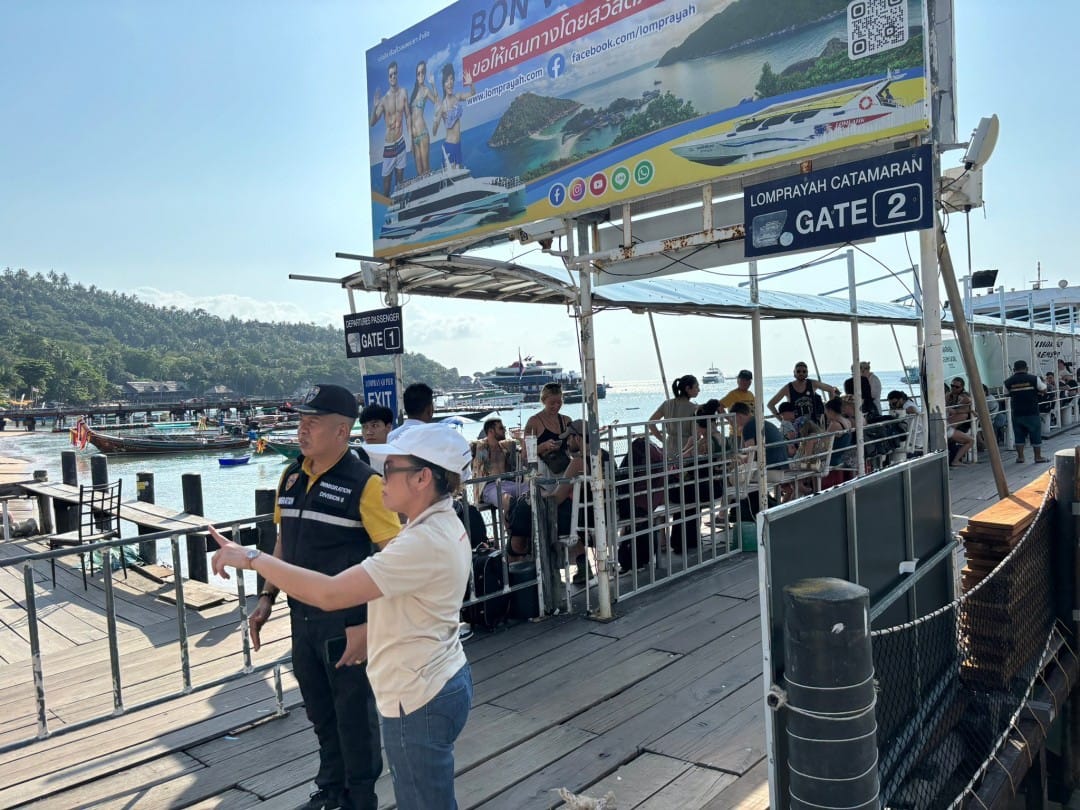 วันที่ 29 ก.พ.67 เวลา 16.15 น. ร.ต.ต.ภรภัทร เมืองชู รอง สว.ตม.จว.สุราษฎร์ธานี พร้อมเจ้าหน้าที่ชุดสืบสวน ชป.5 (เกาะเต่า) ออกสืบสวนหาข่าวในพื้นที่รับผิดชอบเพื่อป้องกันปราบปรามสกัดกั้นคนต่างด้าวหลบหนีเข้าเมืองตามนโยบายของผู้บังคับบัญชาและอำนวยความสะดวกให้กับนักท่องเที่ยวบริเวณท่าเทียบเรือเทศบาลตำบลเกาะเต่า ม.2 ต.เกาะเต่า อ.เกาะพะงัน จ.สุราษฎร์ธานี