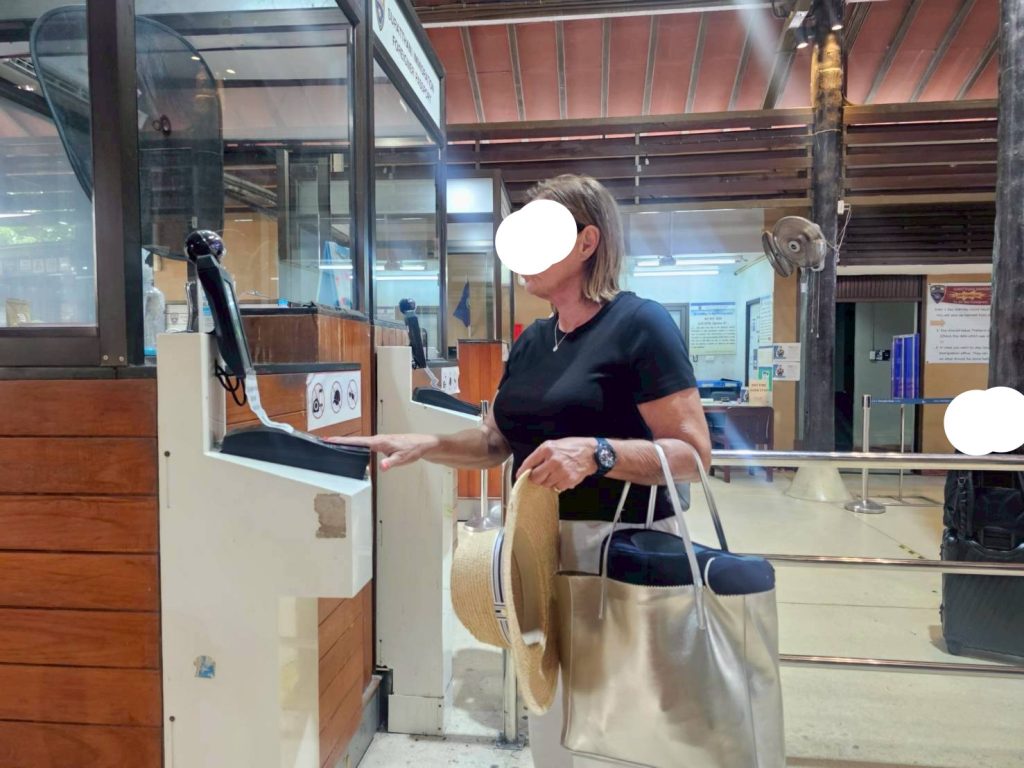 วันที่ 9/2/2569 เวลา 10.47 น. ร.ต.อ.หญิง ภาวดี หวานทอง รอง สว.ตม.จว.สุราษฎร์ธานี พร้อมด้วยเจ้าหน้าที่ ตม.จว. สุราษฎร์ธานี (ทอ.สมุย) ปฏิบัติหน้าที่ตรวจบุคคลและพาหนะทางอากาศให้กับผู้โดยสารที่เดินทางออก เที่ยวบิน PG805 ในเขตพื้นที่รับผิดชอบประจำสนามบินสมุย
