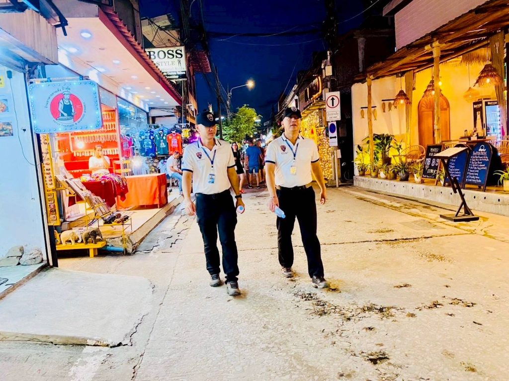 ด.ต.ชินศักดิ์ ชิ่นฝั่น ผบ.หมู่ ตม.จว.สุราษฎร์ธานี,ด.ต.สุวิทย์ วงศ์จำปา ผบ.หมู่ ตม.จว.สุราษฎร์ธานี , นาย หลิม ยู่ ซิ่น (MR.LIM YU SIN) สัญชาติ มาเลเซีย อส.ตม. ออกเดินเท้าตรวจตราดูแลความปลอดภัยแก่นักท่องเที่ยวและผู้ประกอบการ ตามคำสั่ง ตม.จว.สุราษฎร์ธานี ที่ 133/2567 ลง วันที่ 24 ธ.ค. 2567 เรื่องสายตรวจเดินเท้าร่วมบูรณาการเพื่อชุมชนปลอดภัย ห้วง 1-31 ม.ค. 2568 ตั้งแต่เวลา 18.00-20.30 น. ณ ชุมชนฟิชเชอร์แมน วิลเลจ ม.1 ต.บ่อผุด อ.เกาะสมุย จ.สุราษฎร์ธานี