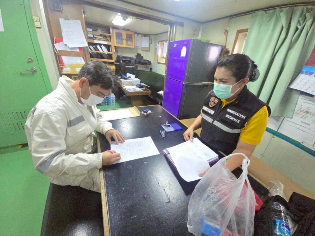 วันที่ 17 เม.ย.68 ร.ต.อ.หญิง ธมนวรรณ มณี รอง สว.ตม.จว.สุราษฎร์ธานี ,ร.ต.ท.ผดุงศักดิ์ แยบกระโทก รอง สว (อก.) ตม.จว.สุราษฎร์ธานี ,ด.ต.หญิง พิมประภา จันทร์ขาว ปฏิบัติหน้าที่ตรวจบุคคลและพาหนะทางน้ำ ในเขตพื้นที่รับผิดชอบ ประจำท่าเรืออ่าวบ้านดอน อ.เมือง จว.สุราษฎร์ธานี