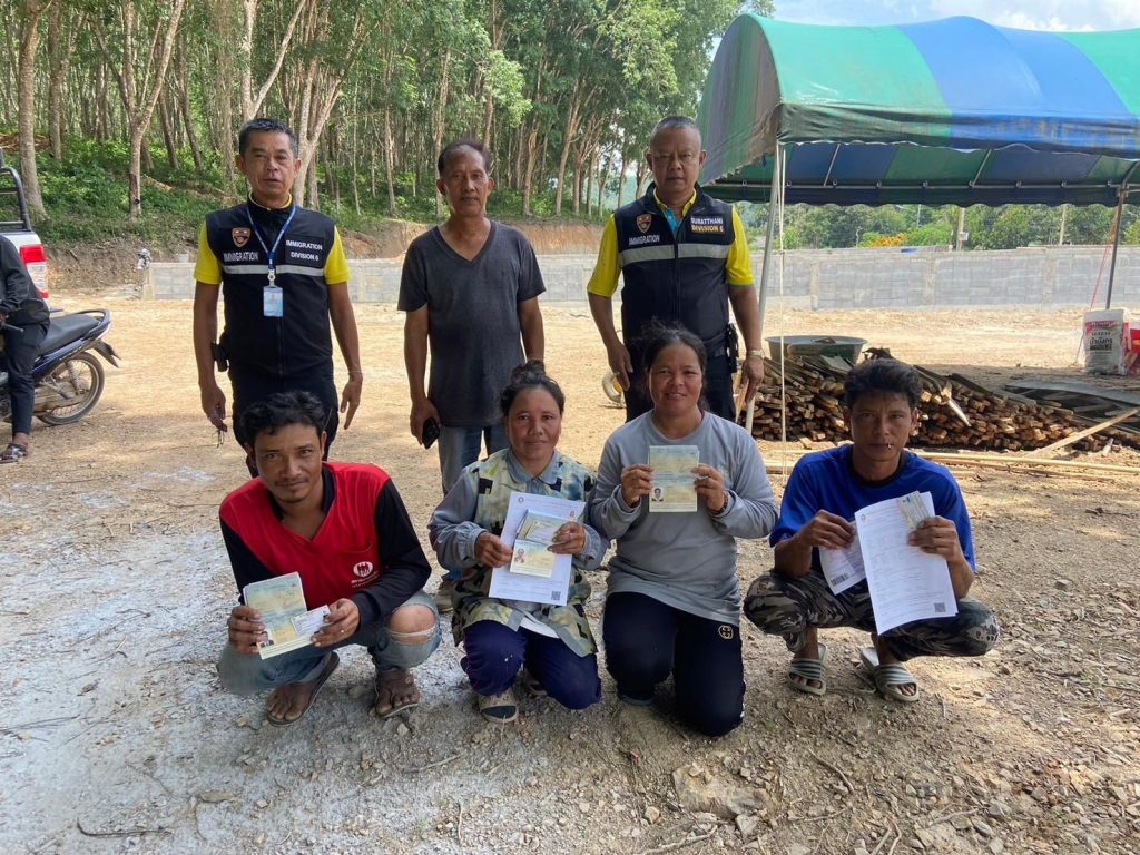 วันที่ 3 ต.ค.2567 ร.ต.ท. พิทัก ฤทธิรักษา รอง สว.(สส.) ตม.จว.สุราษฎร์ธานี ใช้รถยนต์ตรวจการณ์ไฟฟ้าอัจฉริยะ (SMART PATROL CAR:SPC) ออกสืบสวนหาข่าวตรวจสอบแรงงานต่างด้าวพร้อมทั้งประชาสัมพันธ์การแจ้งที่พักอาศัย (ม.37,ม.38) แก่สถานประกอบการในพื้นที่รับผิดชอบดังนี้ ก่อสร้างบ้าน ม.4 ต.ท่าอุแท อ.กาญจนดิษฐ์ จว.สุราษฎร์ธานี ผลการตรวจสอบพบแรงงานต่างด้าวสัญชาติเมียนมา จำนวน 4 ราย (ชาย 2 คน หญิง 2 คน) ผลการตรวจสอบ เอกสารถูกต้อง ไม่พบการกระทำความผิด และสิ่งผิดกฎหมาย แต่อย่างใด
