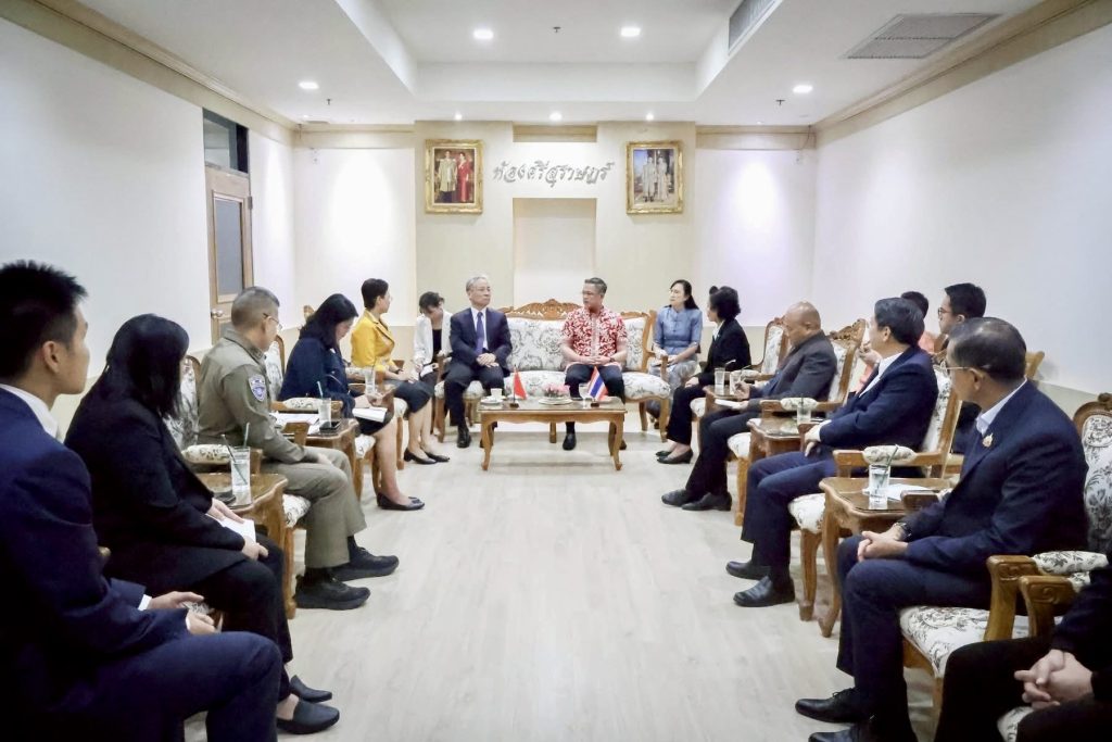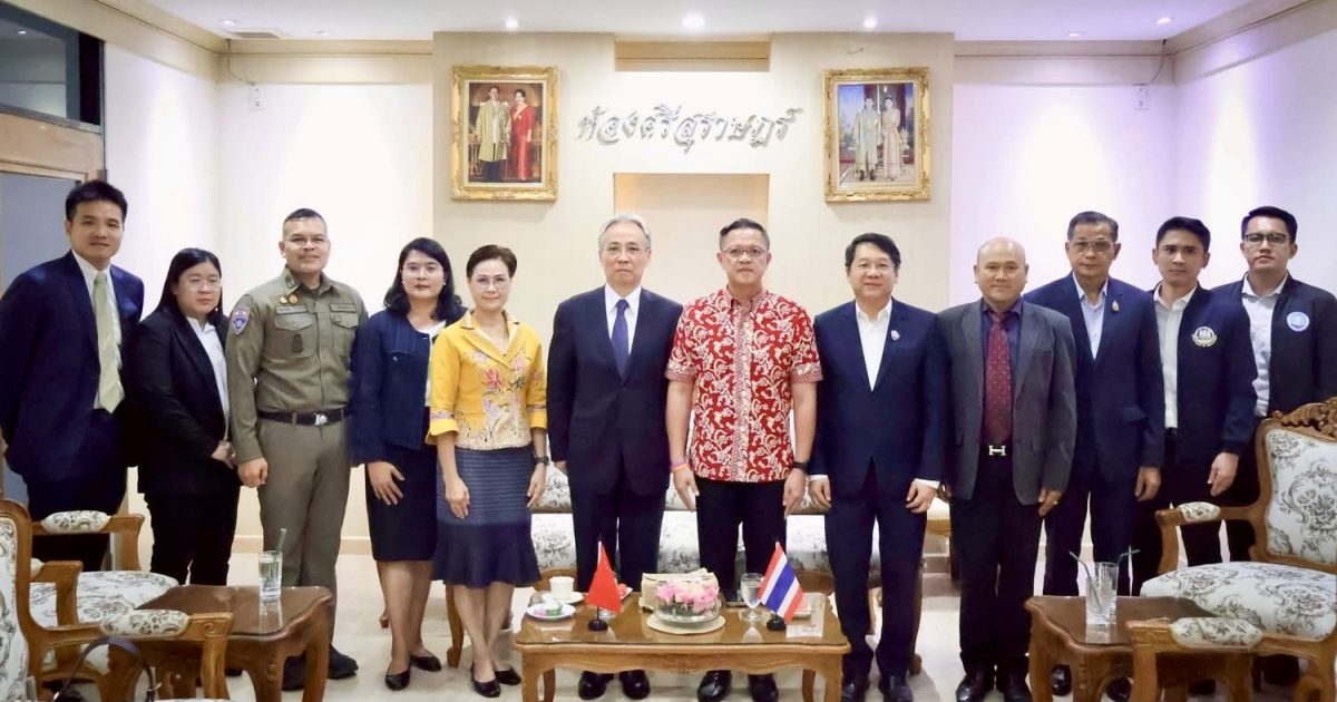 นายธีรุตม์ ศุภวิบูลย์ผล ผู้ว่าราชการจังหวัดสุราษฎร์ธานี ให้การต้อนรับ นายวัง จื้อเจียน กงสุลใหญ่แห่งสาธารณรัฐประชาชนจีน ณ จังหวัดสงขลา