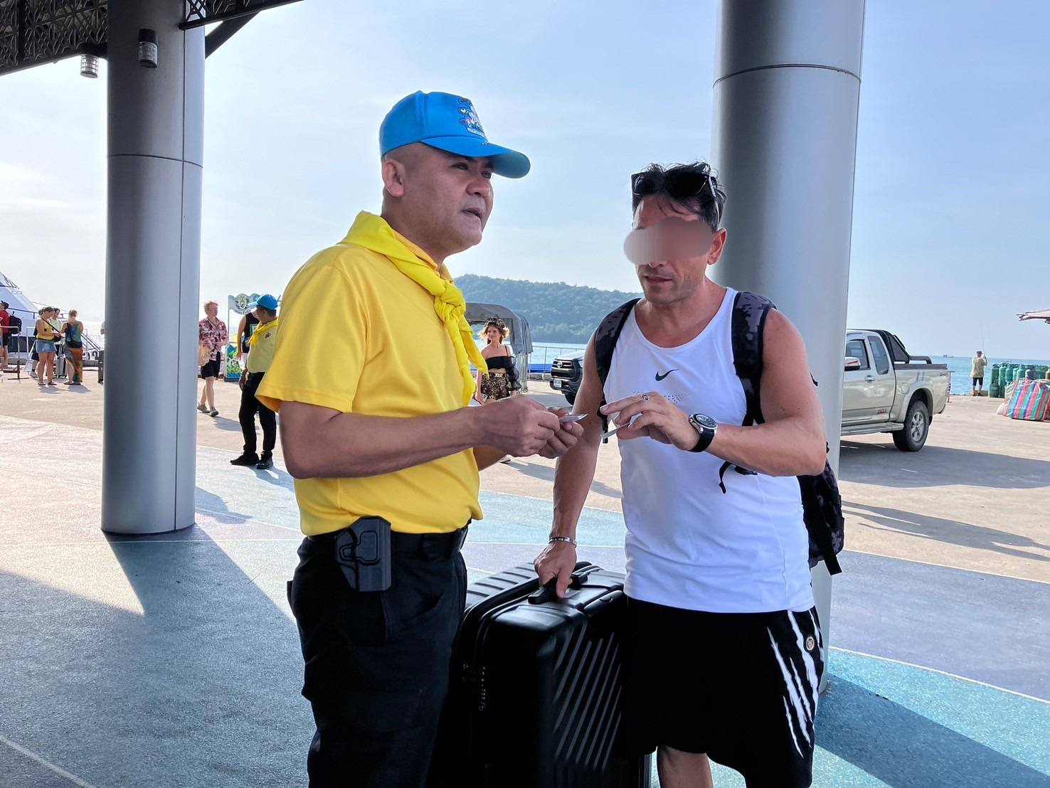 วันที่ 31 ธ.ค. 67 เวลา 17.30 น. ร.ต.อ.สิทธิชัย ขำสุข, ร.ต.อ.สิริวัฒน์ สมหวัง รอง สว.ตม.จว.สุราษฎร์ธา
