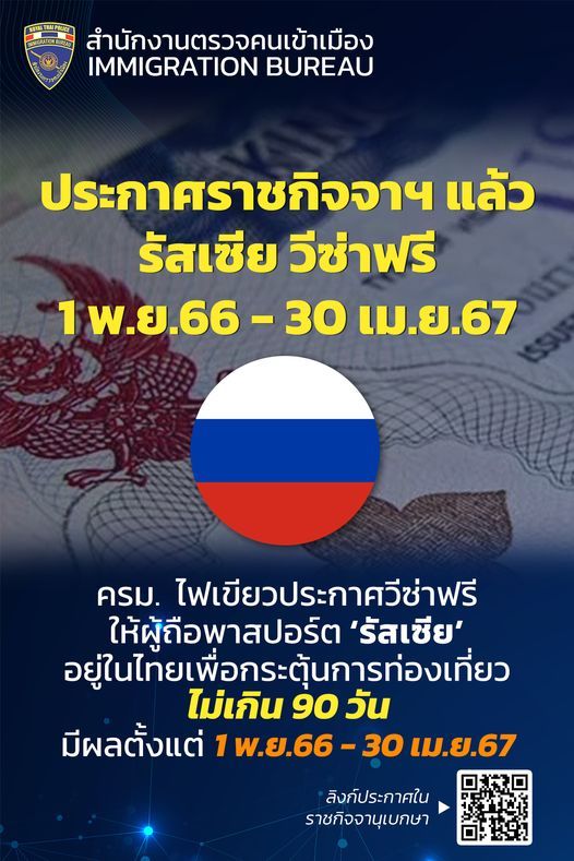 ครม. ไฟเขียวประกาศวีซ่าฟรี ให้ผู้ถือพาสปอร์ต ‘รัสเซีย’ อยู่ในไทยเพื่อกระตุ้นการท่องเที่ยว ไม่เกิน 90