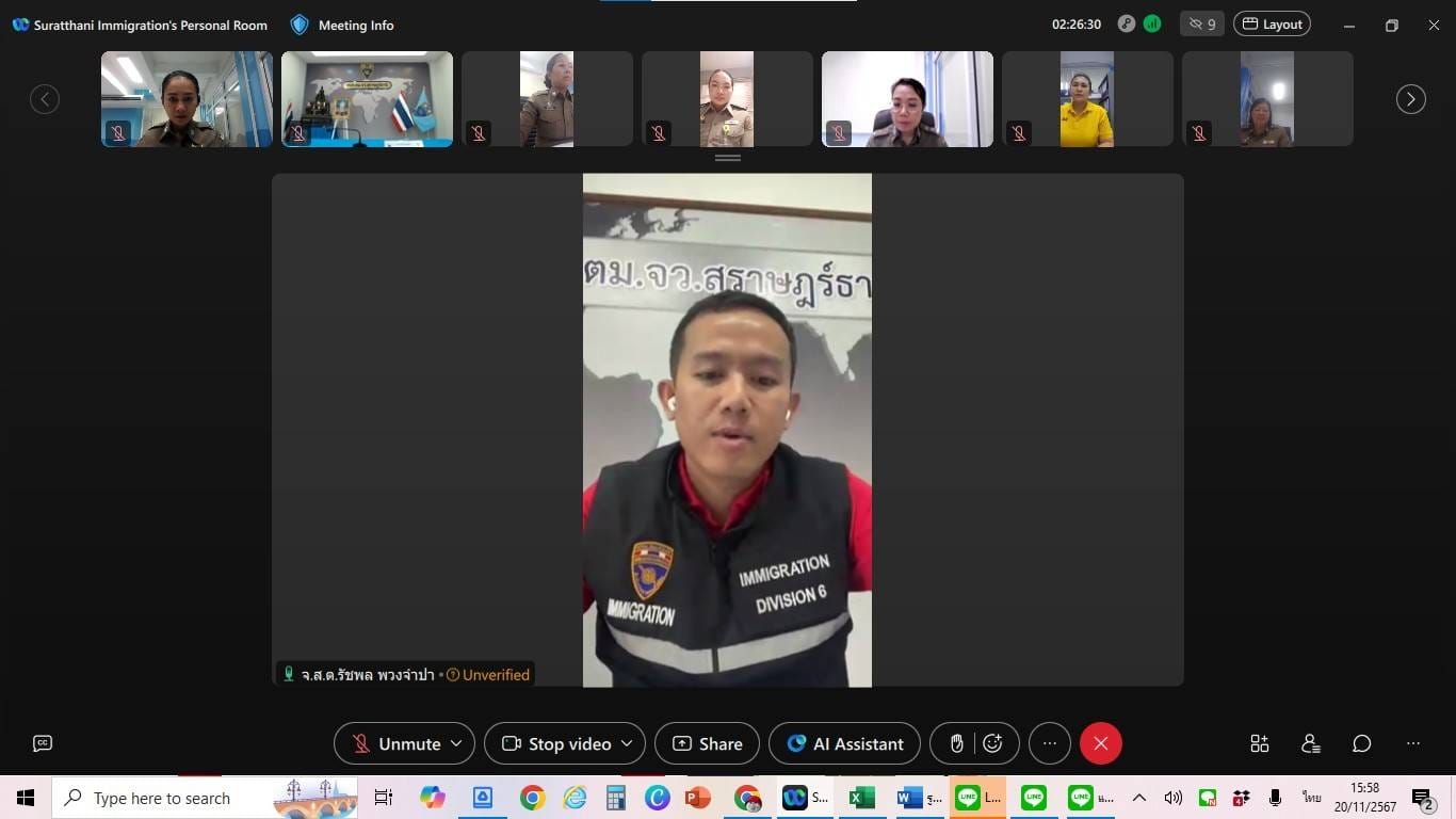 วันที่ 19 พ.ย.67 เวลา 09.00 น. พ.ต.ท.พิงคะรัตน์ ซ้ายขวัญ รอง ผกก.ตม.จว.สุราษฎร์ธานี เข้าร่วมประชุมรั