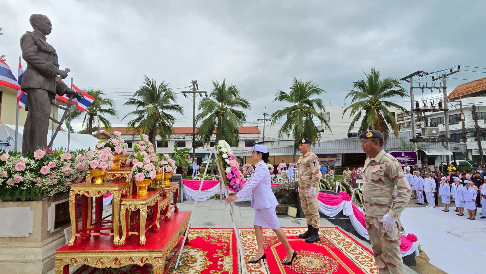 วันที่ 23 ต.ค.2568 เวลา 8.00 น. ร.ต.อ.หญิง มนธีรา สนเลม็ด รอง สว.ตม.จว.สุราษฎร์ธานี ร่วมพิธีวางพวงมา