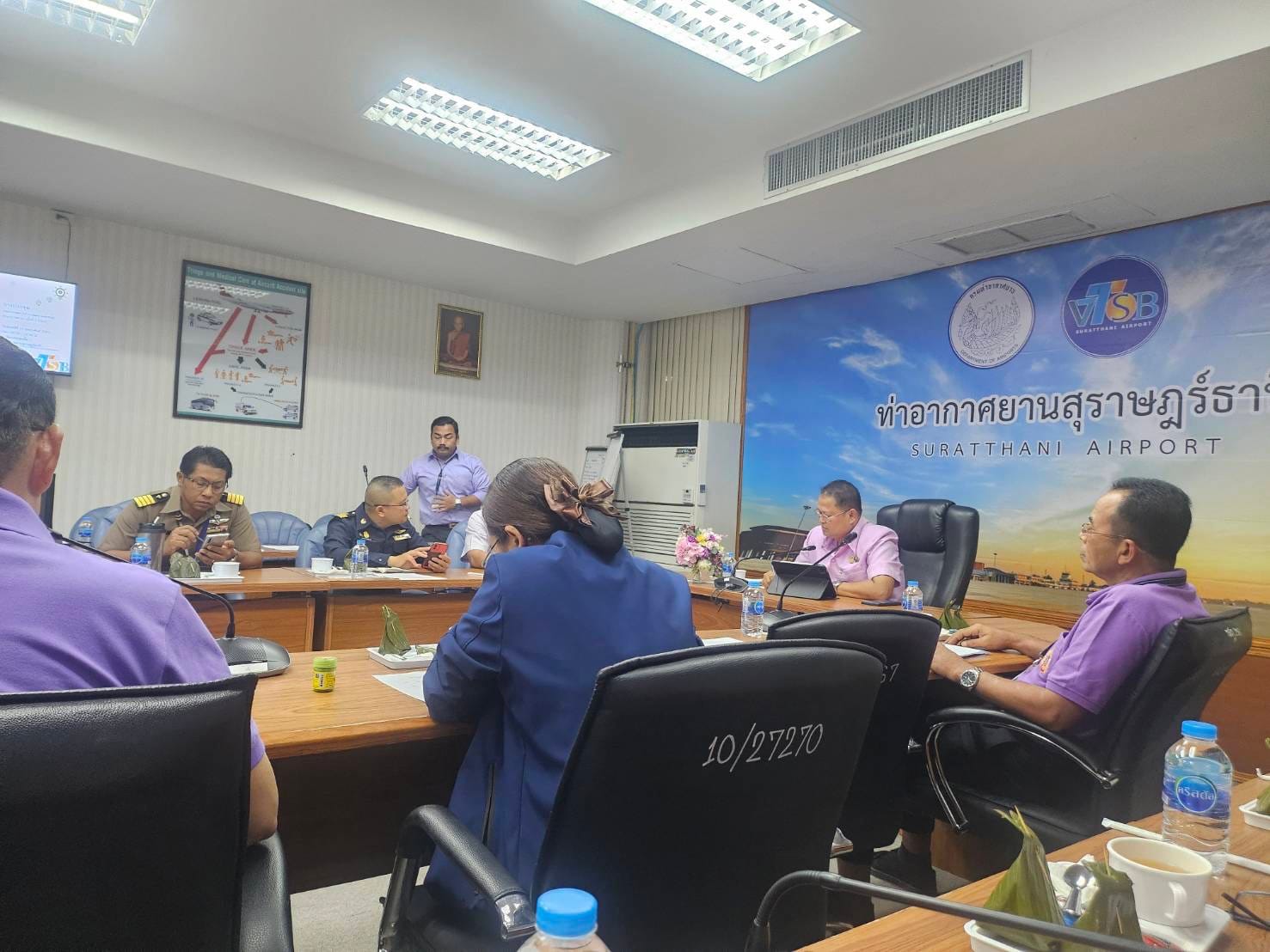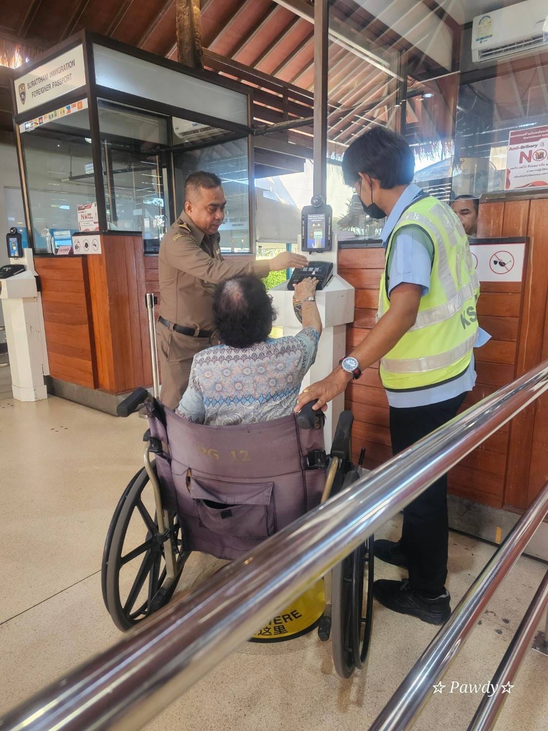 ร.ต.อ.หญิง อลิตสรา วงษ์แก้ว รอง สว.ตม.จว.สุราษฎร์ธานี และเจ้าหน้าที่ ตม.จว.สุราษฎร์ธานี (ทอ.สมุย) ปฏิบัติหน้าที่ตรวจบุคคลและพาหนะ พร้อมดูแลอำนวยความสะดวกหน้าช่องตรวจให้กับผู้โดยสารที่เดินทางเข้า-ออก ณ สนามบินสมุย