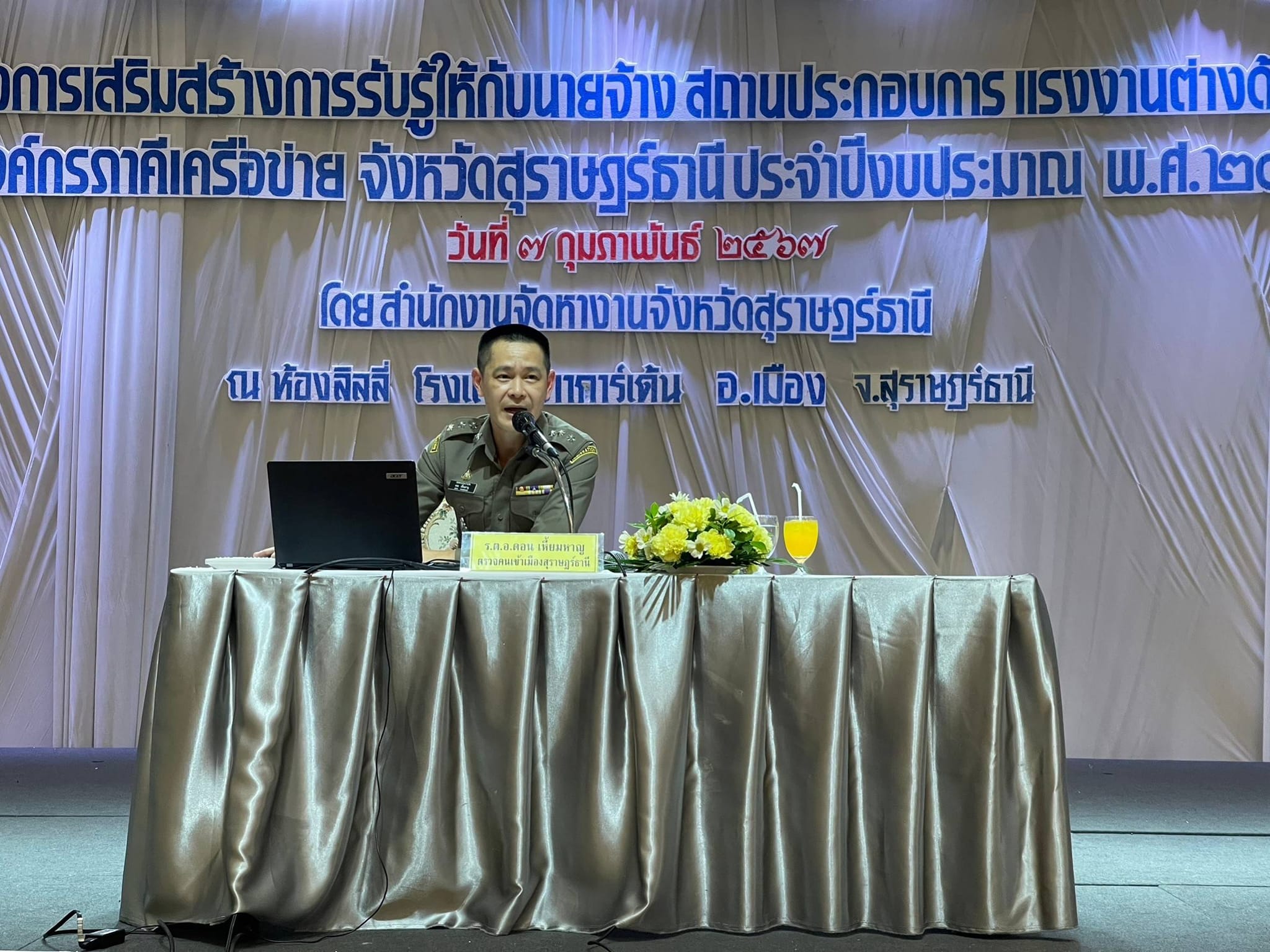 วันที่ 8 ก.พ. 67 เวลา 10.00 น. พ.ต.ท.พิงคะรัตน์ ซ้ายขวัญ รอง ผกก.ตม.จว.สุราษฎร์ธานี รักษาราชการแทน ผ