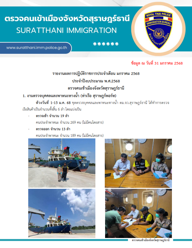 วันที่ 30 ม.ค.68 ร.ต.อ.ปิติพงษ์ เสนชู รอง สว.ตม.จว.สุราษฎร์ธานี ,ร.ต.อ.หญิง ภาวดี หวานทอง ,ร.ต.อ.หญิ