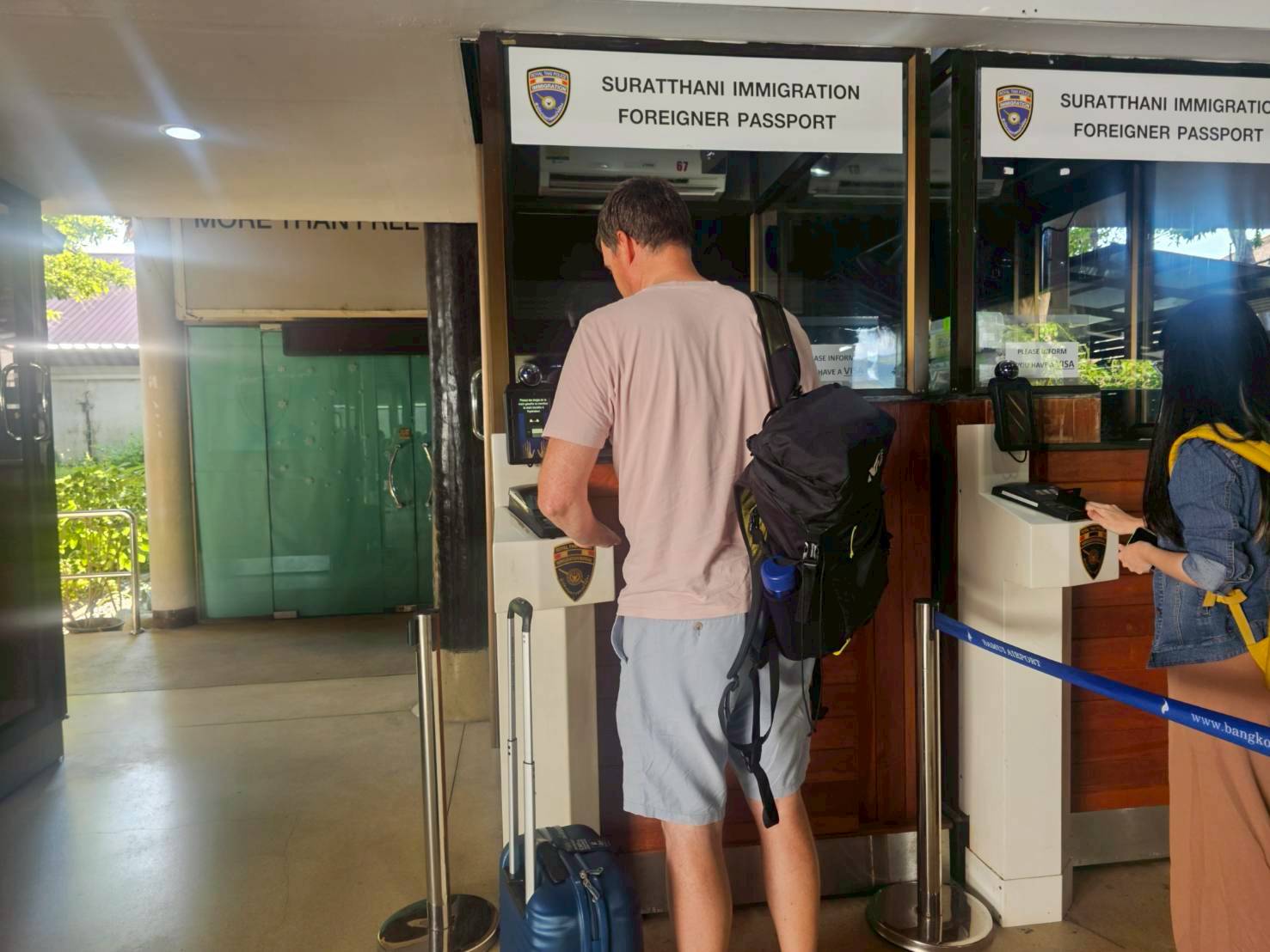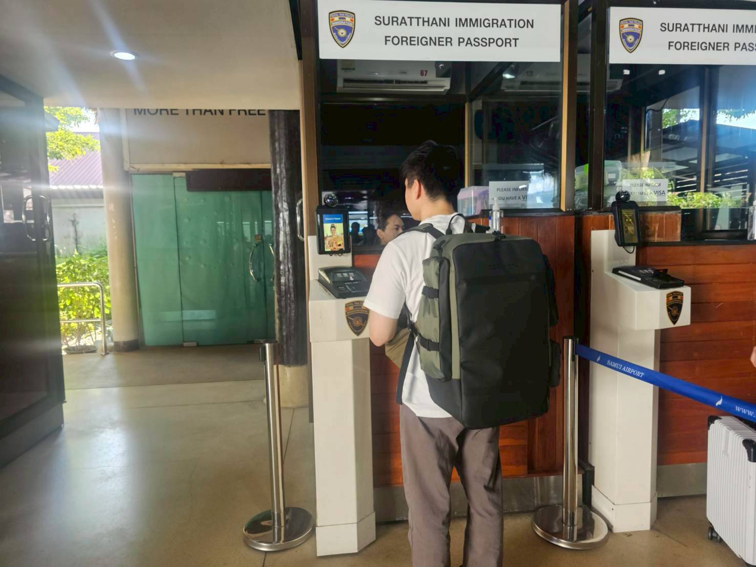 ตม.จว.สุราษฎร์ธานี (ทอ.สมุย) ปฏิบัติหน้าที่ตรวจบุคคลและพาหนะทางอากาศ