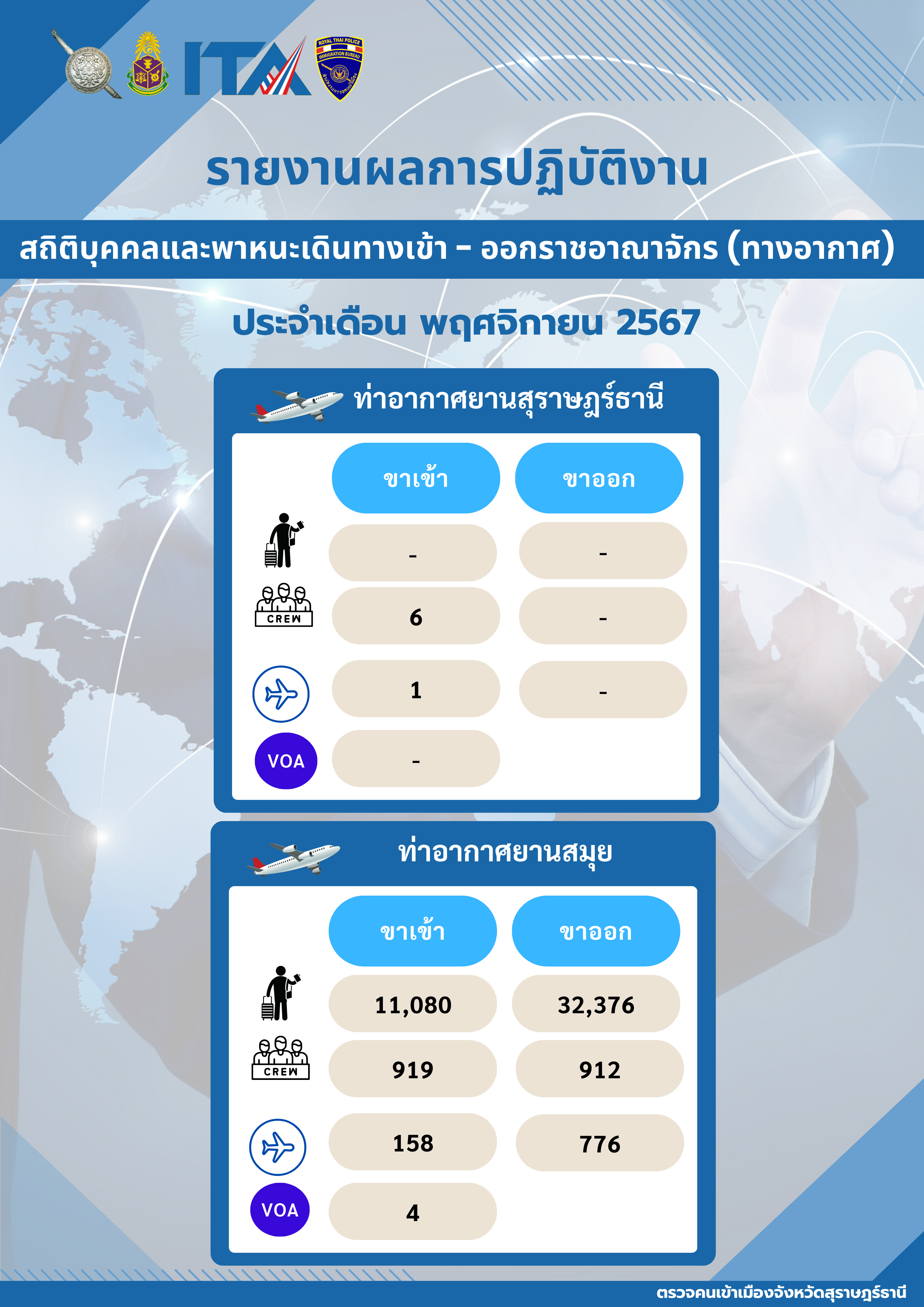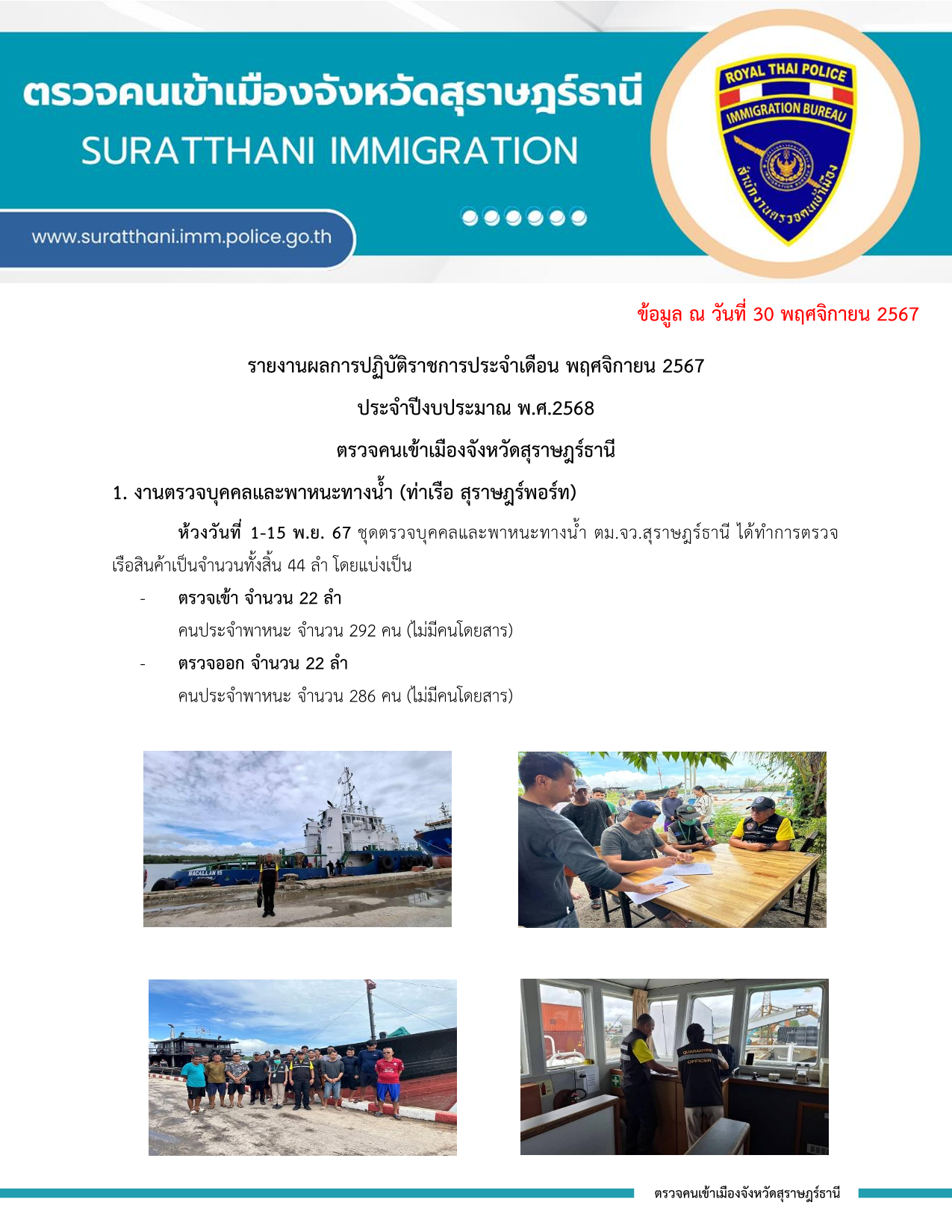 วันที่ 30 พ.ย.67 ร.ต.อ.ปิติพงษ์ เสนชู รอง สว.ตม.จว.สุราษฎร์ธานี ,ร.ต.อ.หญิง ภาวดี หวานทอง ,ร.ต.อ.หญิ