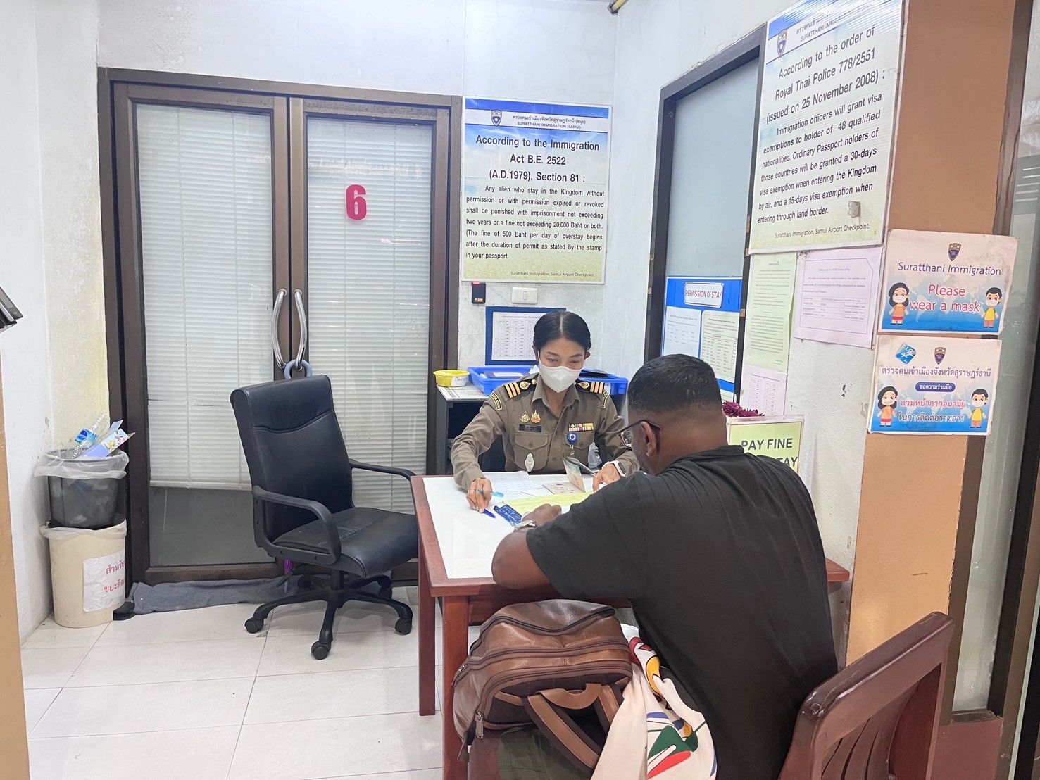 วันที่ 23 พ.ย.67 ร.ต.อ.ปิติพงษ์ เสนชู รอง สว.ตม.จว.สุราษฎร์ธานี ,ร.ต.อ.หญิง ภาวดี หวานทอง ,ร.ต.อ.หญิ