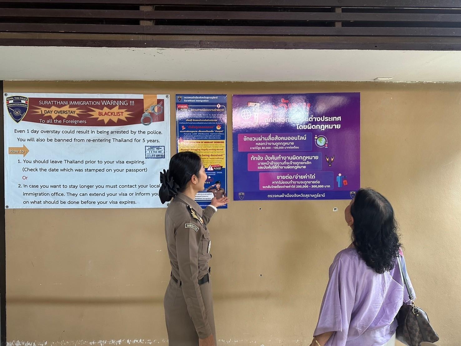 วันที่ 12 พ.ย.67 ร.ต.อ.ปิติพงษ์ เสนชู รอง สว.ตม.จว.สุราษฎร์ธานี ,ร.ต.อ.หญิง ภาวดี หวานทอง ,ร.ต.อ.หญิ