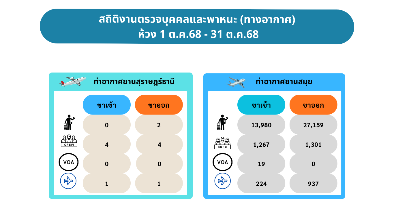 เจ้าหน้าที่ ตม.จว.สุราษฎร์ธานี (ทอ.สมุย) ปฏิบัติหน้าที่ตรวจบุคคลและพาหนะทางอากาศ, Overstay, Visa on arrival พร้อมดูแล ช่วยเหลือ อำนวยความสะดวก