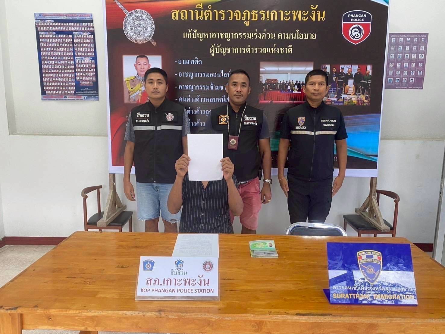 วันที่ 3 พ.ค.2568 เวลา 11.20 น. ร.ต.อ.อรุณ มูสิกิ้ม รอง สว.ตม.จว.สุราษฎร์ธานี,ร.ต.ท.ธรรมนูญ แพน้อย ร