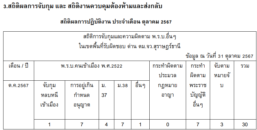 เจ้าหน้าที่ประจำชุด ร่วมกันจับกุมบุคคล สัญชาติ ลาวซึ่งต้องหาว่ากระทำความผิดฐาน “เป็นบุคคลต่างด้าวอยู่ในราชอาณาจักรโดยการอนุญาตสิ้นสุด(อยู่เกิน 6,276 วัน)”ตามมาตรา 81