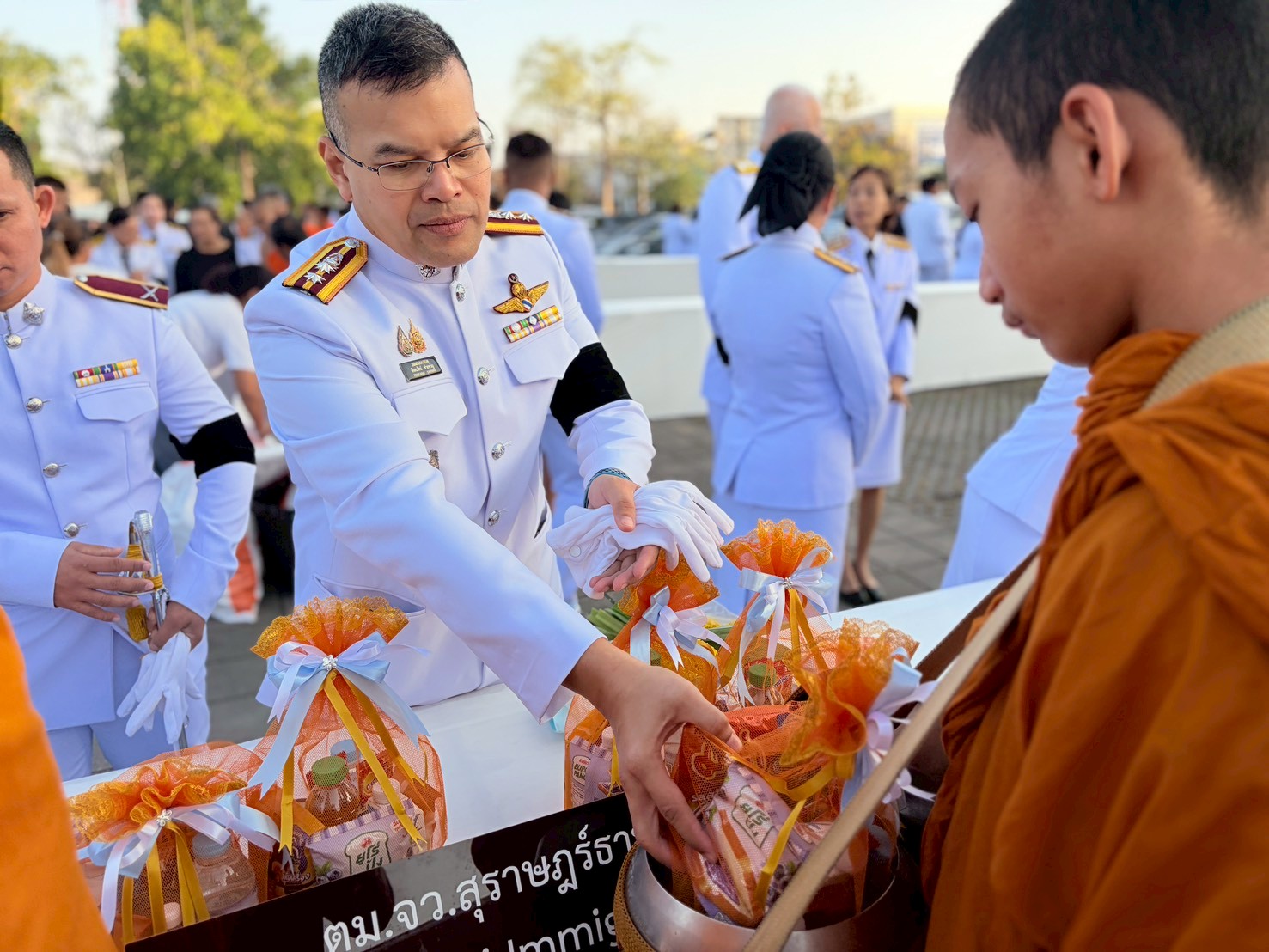 ตม.จว.สุราษฎร์ธานี ร่วมพิธีทำบุญตักบาตร และพิธีบำเพ็ญกุศลแด่สมเด็จพระนางเจ้าสิริกิติ์ พระบรมราชินีนาถ พระบรมราชชนนีพันปีหลวง ในวาระครบ 100 วัน (สตมวาร) แห่งการสวรรคต