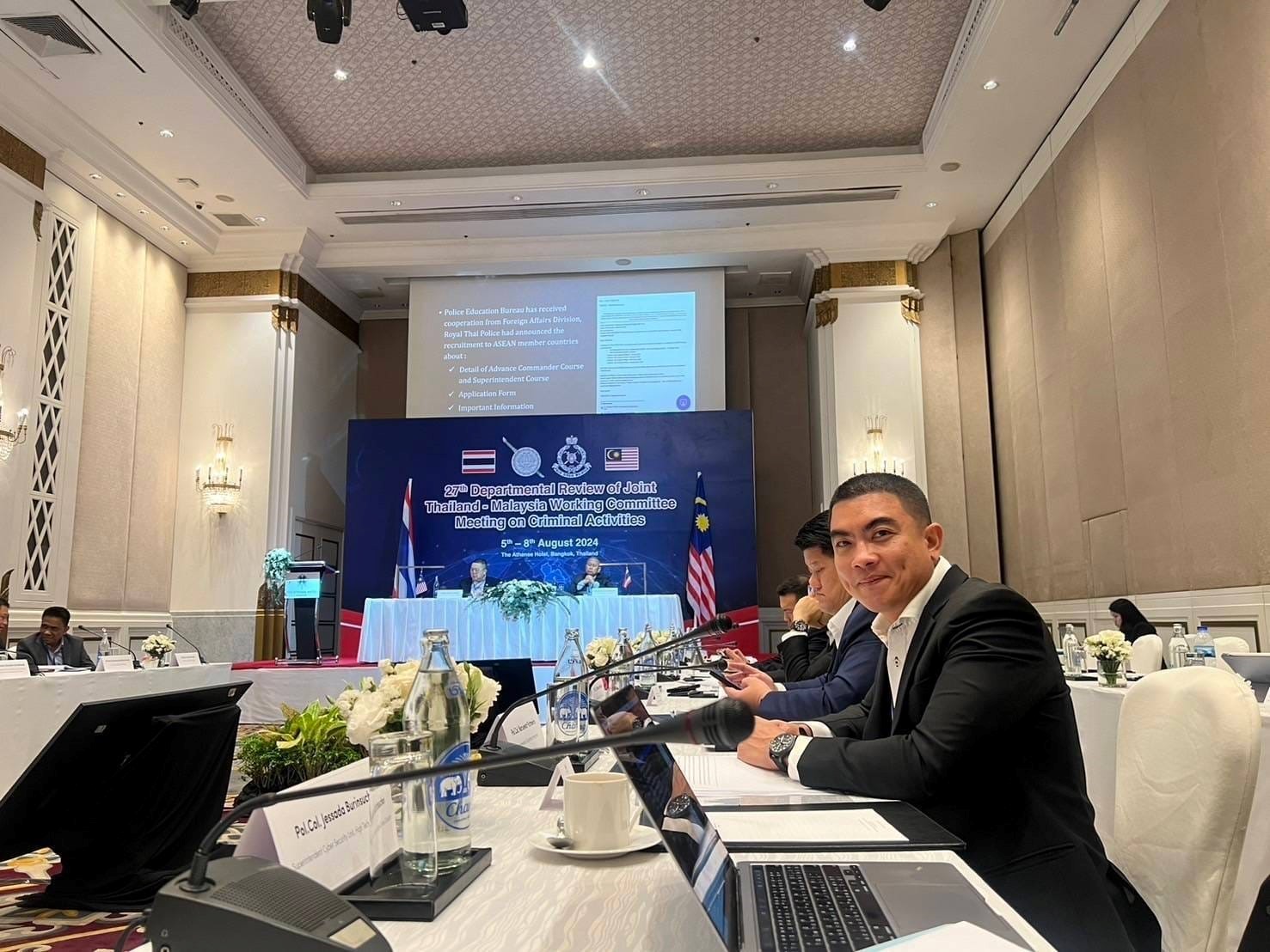 วันที่ 5 ส.ค.67 เวลา 19.00 น. พล.ต.ต.ทรงโปรด สิริสุขะ ผบก.ตม.6 มอบหมายให้ ว่าที่ พ.ต.อ.นฤวัต พุทธวิโร ผกก.ตม.จว.สุราษฎร์ธานี เป็นผู้แทนเข้าร่วมประชุมระหว่างตำรวจไทย – มาเลเซีย ระดับบริหาร ครั้งที่ 27 (27ᵗʰ Departmental Review of Joint Thailand – Malaysia Working Committee Meeting on Criminal Activities) ในหัวข้อ “การค้ามนุษย์และการลักลอบหลบหนีเข้าเมือง” ณ โรงแรม ดิ แอทธินี โฮเทล แบงค็อก กทม. โดยมี พล.ต.ท.ประจวบ วงศ์สุข ผู้ช่วย ผบ.ตร. รรท.รอง ผบ.ตร.(มค) เป็นประธานในพิธีฯ