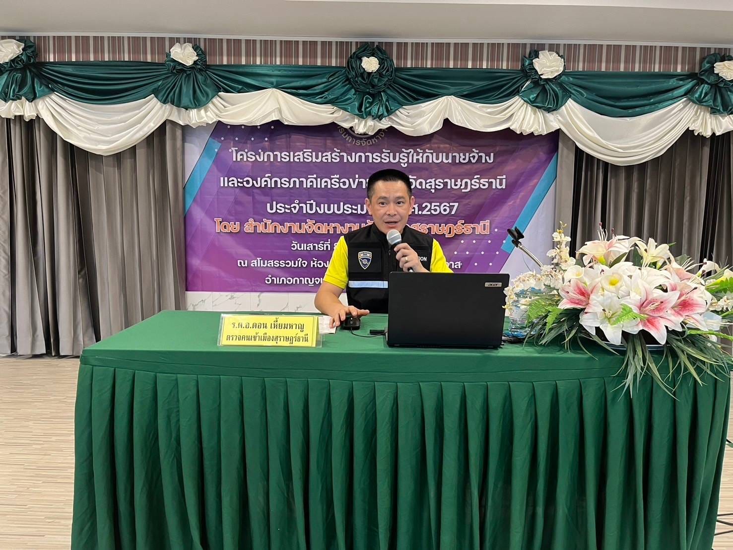 วันที่ 11 มิ.ย.67 เวลา 07.30 น. ร.ต.ต.อรุณ พรหมทอง รอง สว.(อก.)ตม.จว.สุราษฎร์ธานี พร้อมด้วยข้าราชการ