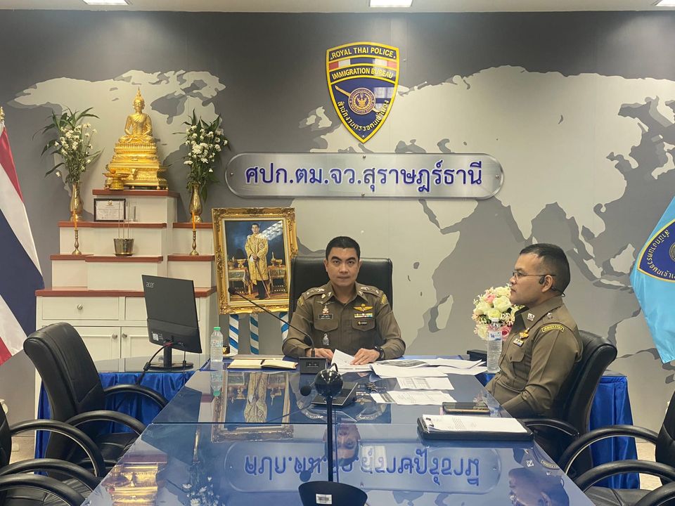 ว่าที่ พ.ต.อ.นฤวัต พุทธวิโร ผกก.ตม.จว.สุราษฎร์ธานี และ พ.ต.ท.พิงคะรัตน์ ซ้ายขวัญ รอง ผกก.ตม.จว.สุราษฎร์ธานี เข้าร่วมประชุม การติดตามสถานการณ์เข้า-ออก ราชอาณาจักรไทยครั้งที 2/2567 ผ่านระบบการประชุมทางไกล ระบบ Zoom Meeting