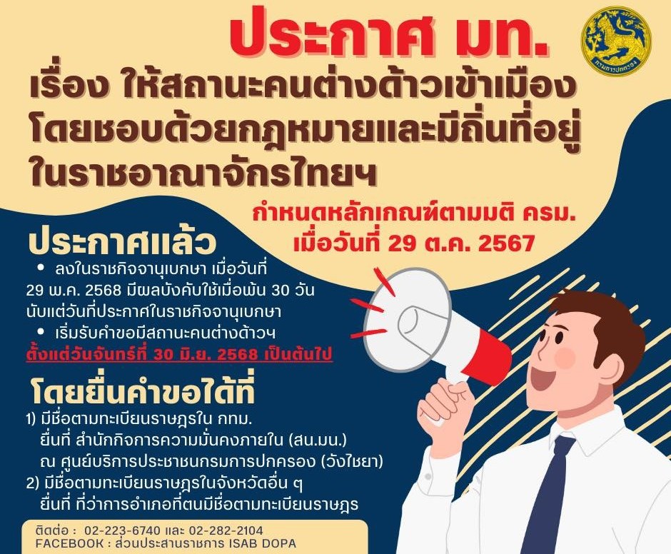https://ratchakitcha.soc.go.th/documents/70583.pdf… ทั้งนี้ เริ่มรับคำขอมีสถานะคนต่างด้าวเข้าเ