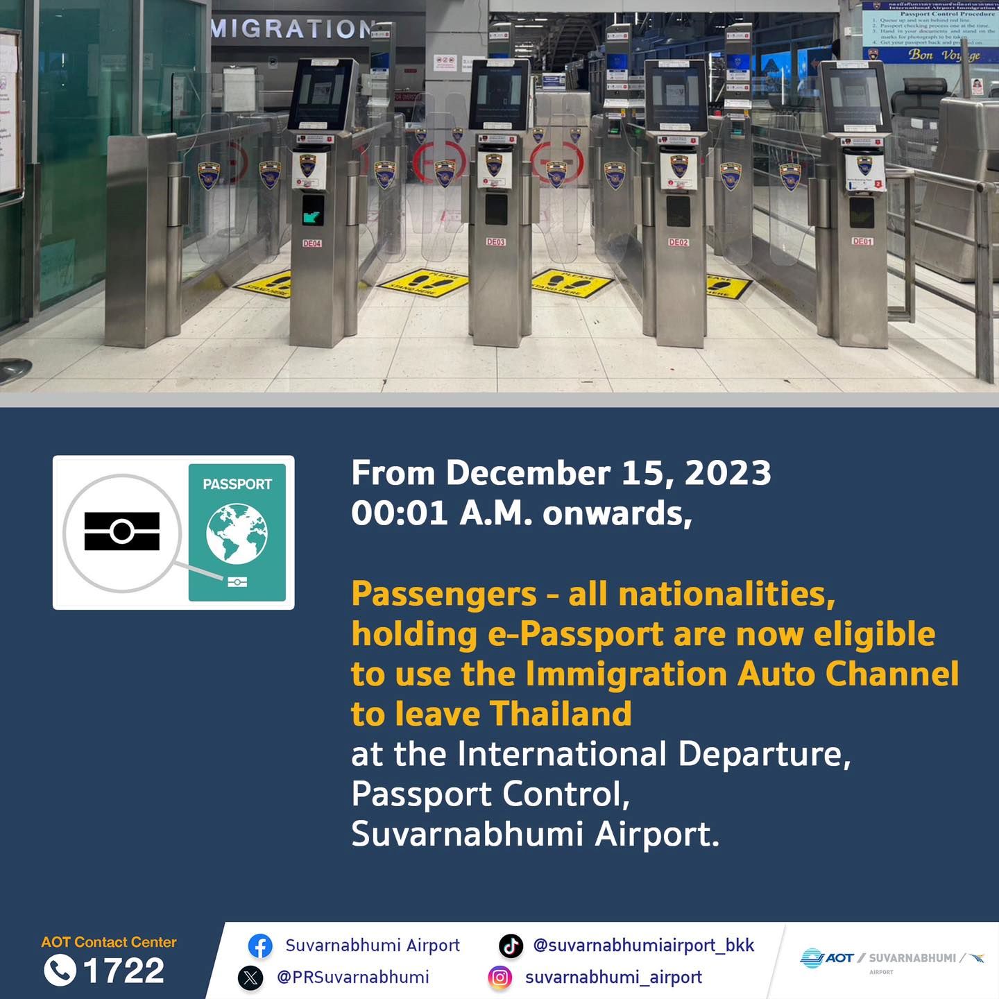 ตั้งแต่วันที่ 15 ธันวาคม พ.ศ.2566 เวลา 00.01 น. เป็นต้นไป ผู้ถือหนังสือเดินทางอิเล็กทรอนิกส์ (e-Pass