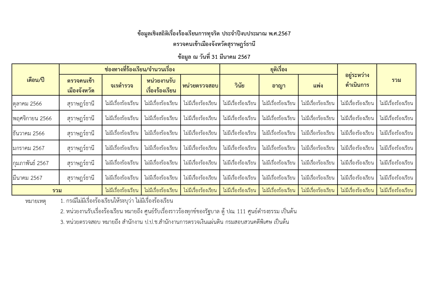 ประกาศ ตรวจคนเข้าเมืองจังหวัดสุราษฎร์ธานีเรื่อง มาตรการป้องกันผู้แจ้งเบาะแสการทุจริตลงวันที่ 16 มกราคม 2567