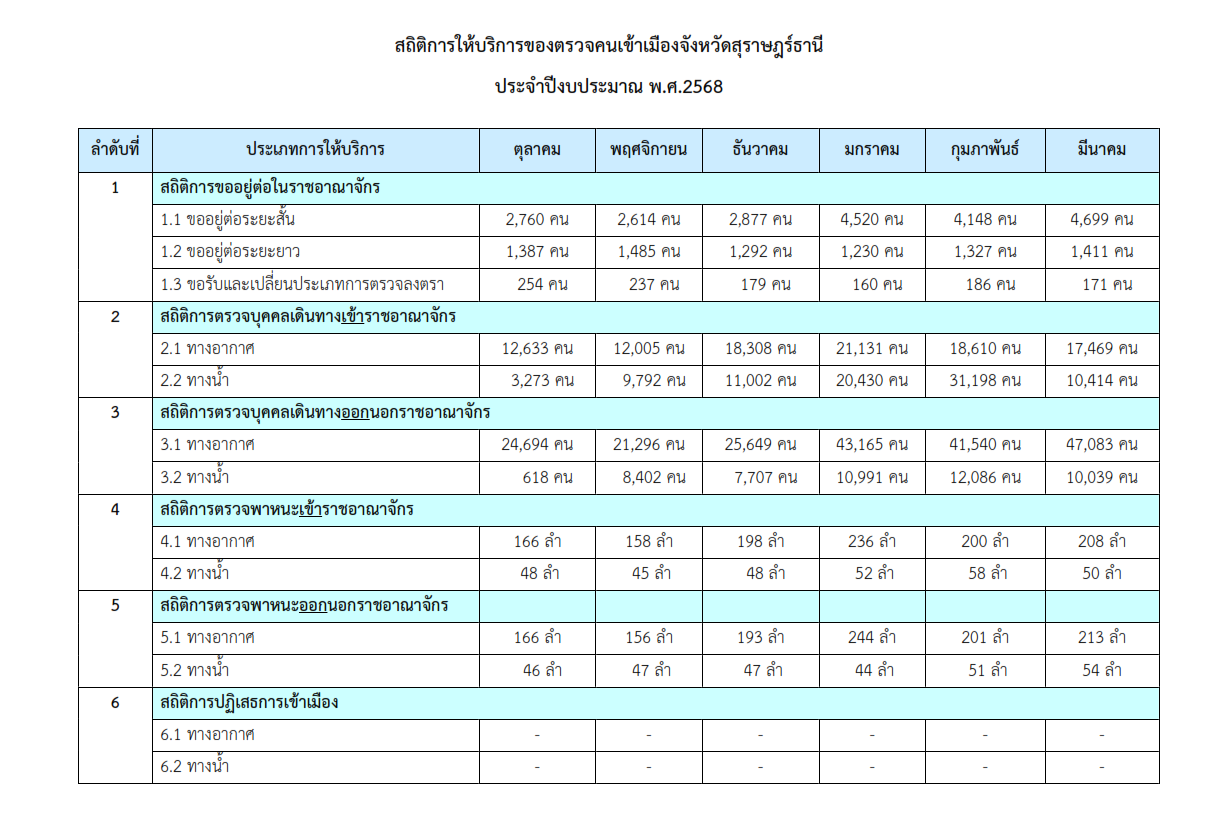 สถิติการให้บริการของตรวจคนเข้าเมืองจังหวัดสุราษฎร์ธานี