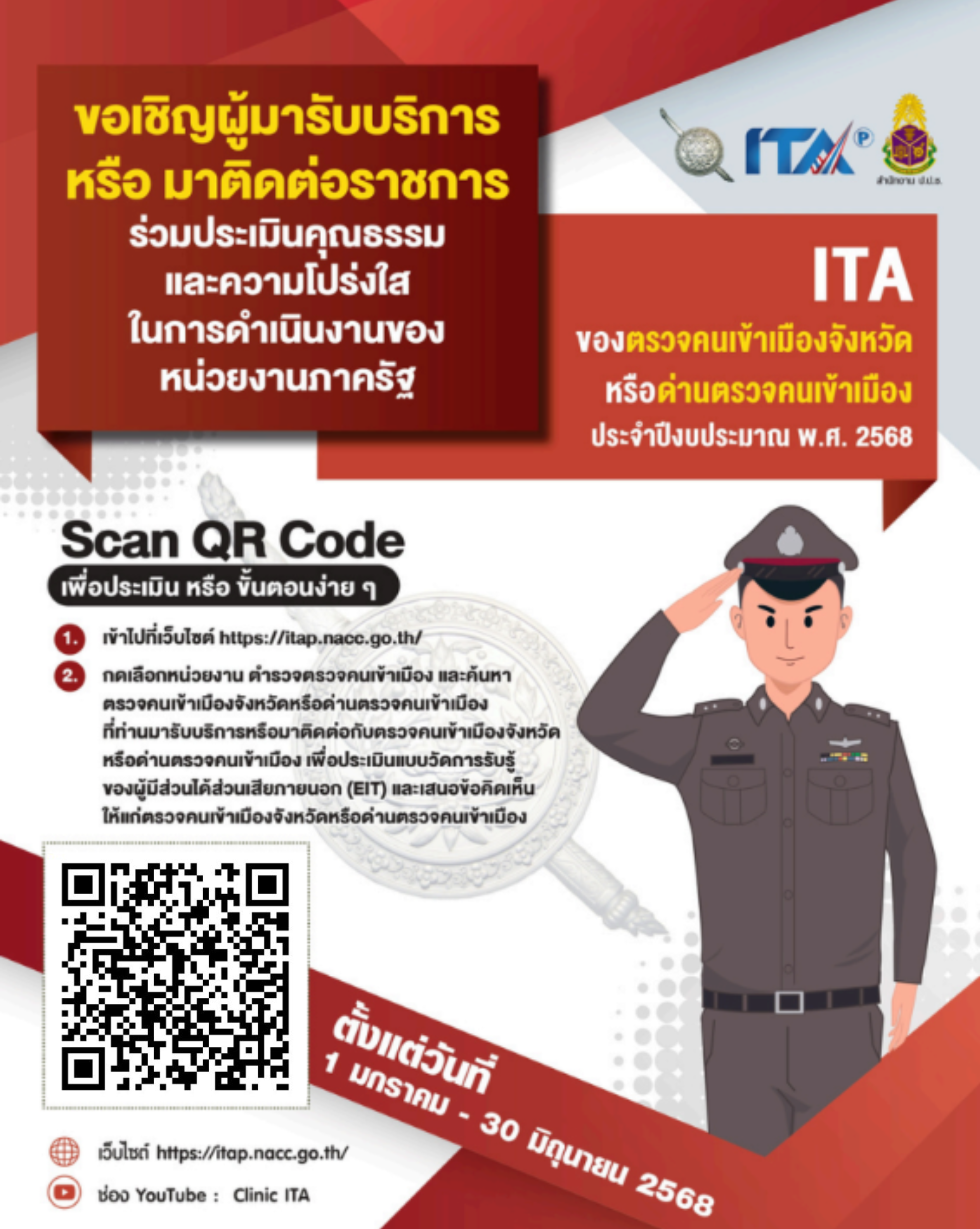 ตรวจคนเข้าเมืองจังหวัดสุราษฎร์ธานี มีการประชาสัมพันธ์ข้อมูลการประเมินคุณธรรมและความโปร่งใส