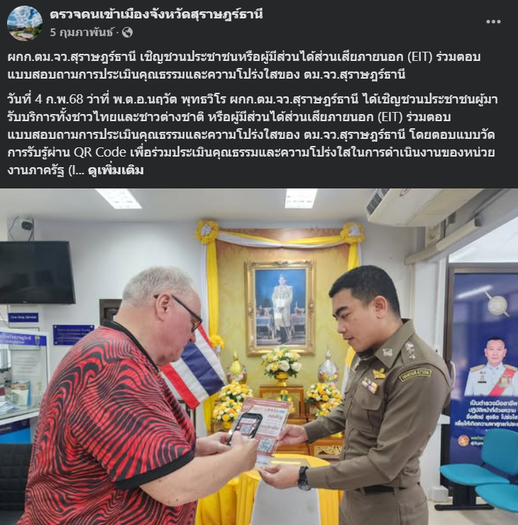 ข่าวการประชาสัมพันธ์ข้อมูลข่าวสารผ่าน Facebook ตรวจคนเข้าเมืองจังหวัดสุราษฎร์ธานี